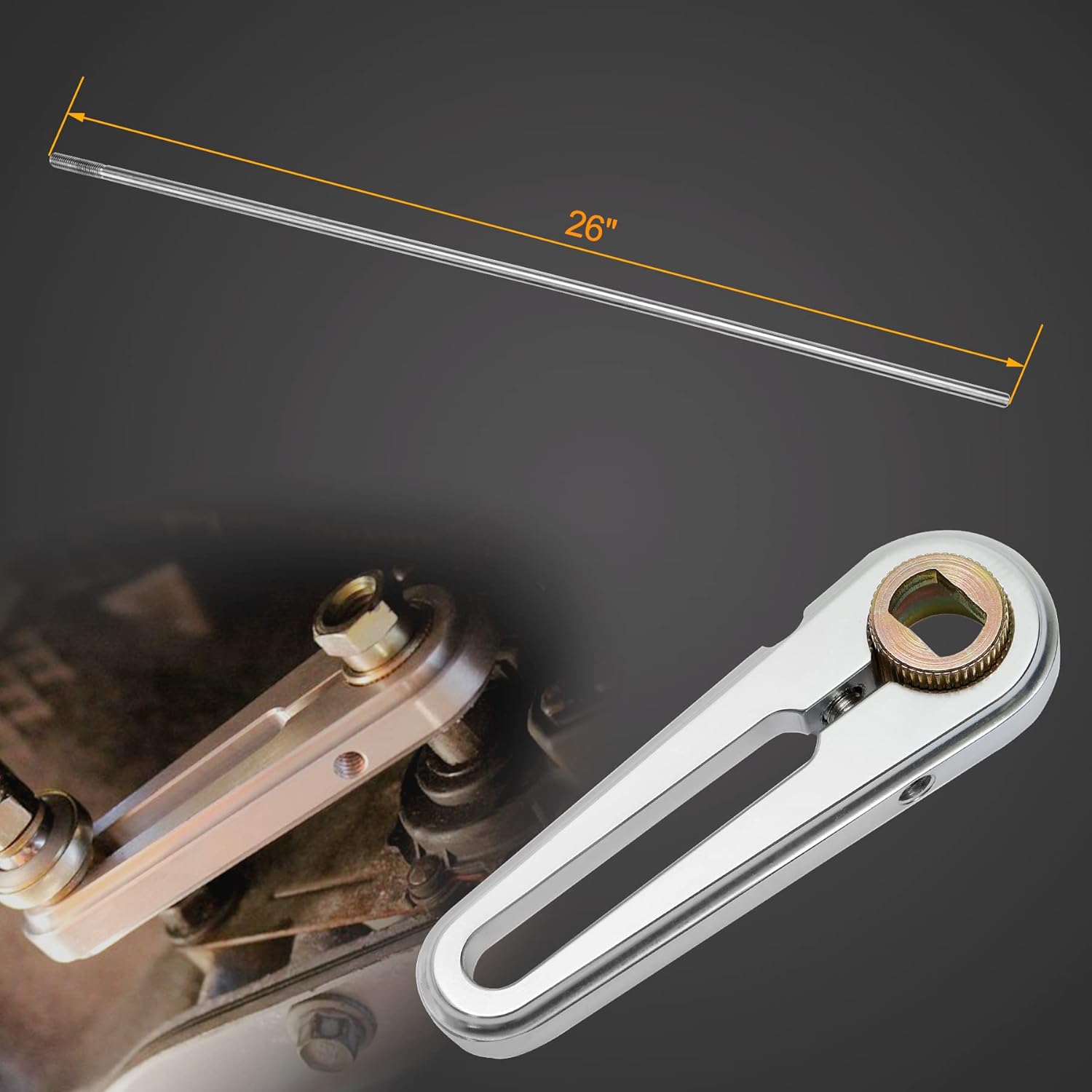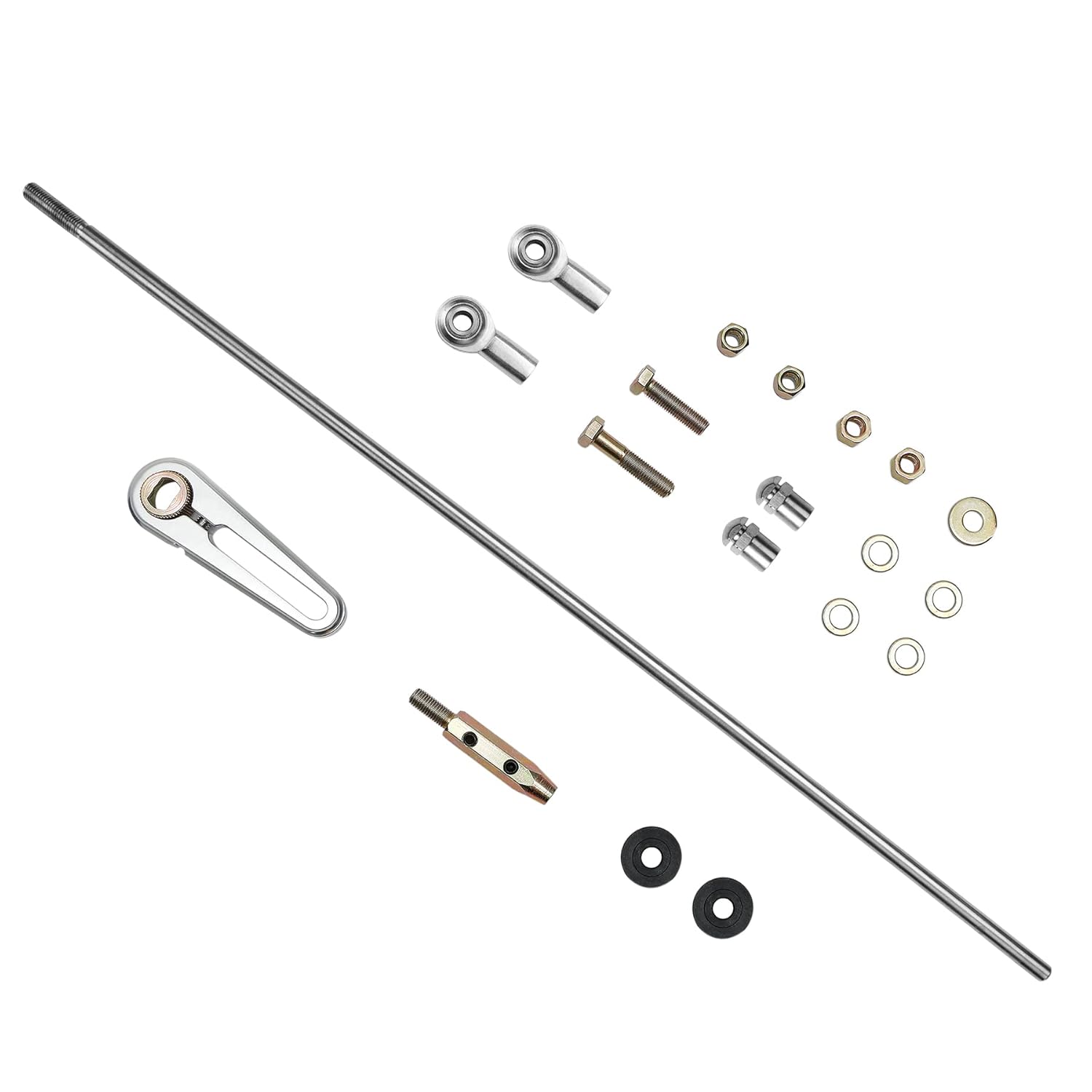 O pacote inclui uma barra de aço inoxidável de 21 polegadas, que pode ser cortada para se ajustar a diversas colunas de direção de mudador de coluna aftermarket. Além disso, o kit vem com extremidade de haste feminina, conector hexagonal com parafusos de fixação, porca de travamento, parafuso de cabeça hexagonal e instruções detalhadas para facilitar a instalação.