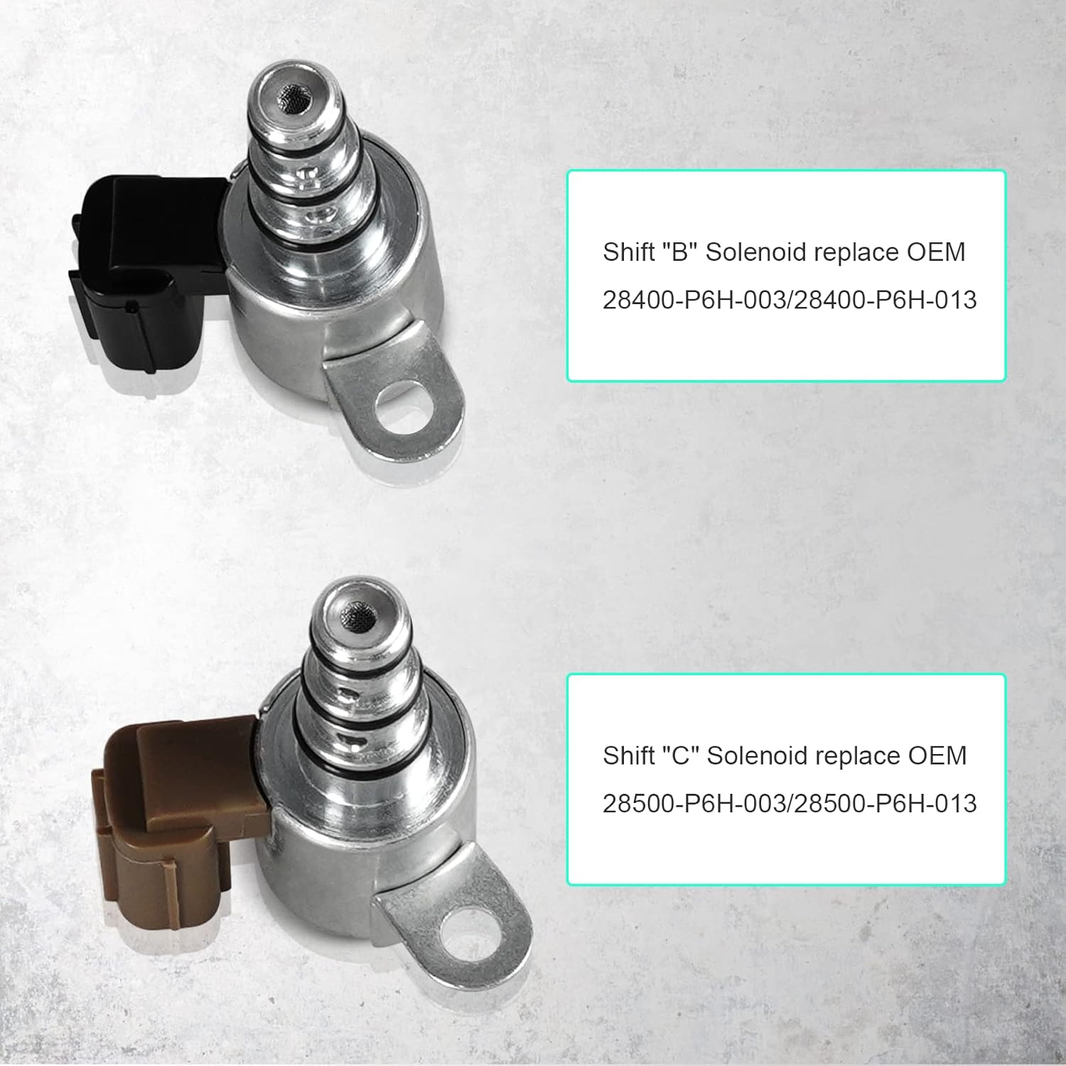Conteúdo da Embalagem: O pacote inclui a Válvula Solenoide “C” (1×) que substitui as peças OEM 28500-P6H-003/28500-P6H-013 e a Válvula Solenoide “B” (1×) que substitui as peças OEM 28400-P6H-003/28400-P6H-013.