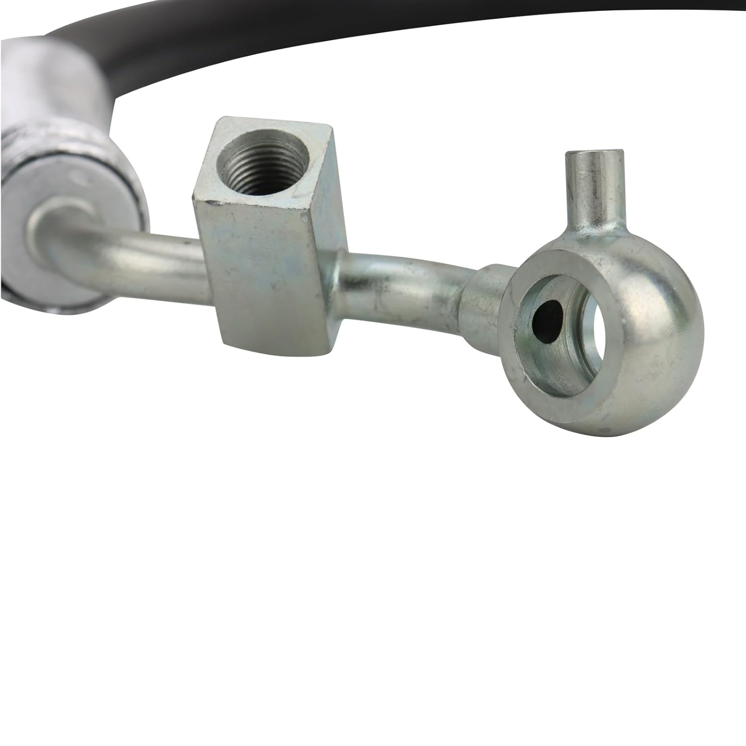 3. Instalação do TRQ Pump to Rack Upper: Conecte o extremo 1 (16 mm, banjo) ao ponto de conexão correspondente na bomba de direção. Aperte a conexão com um torque adequado para garantir um encaixe seguro. Em seguida, conecte o extremo 2 (14 mm) ao rack de direção.