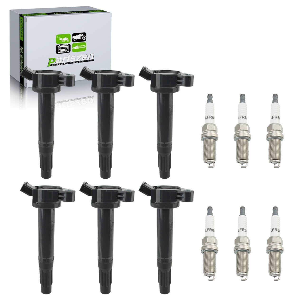 Bobina de Ignição UF487 C1601 - Pacote com 6 Velas de Ignição para Toyota Avalon, Highlander, Camry, RAV4, Sienna e Lexus RX450h, ES350, IS350 2.5L, 2.7L, 3.5L (2006-2016)