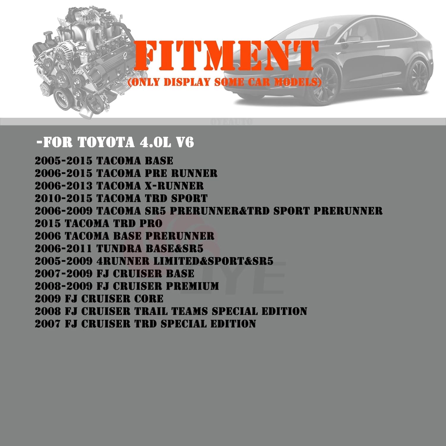 • Compatibilidade: Para Toyota Tacoma, Tundra, 4Runner, FJ Cruiser | Base 2005-2015 | Pre Runner 2006-2015 | SR5 2005-2011 | X-Runner 2006-2013 | TRD Sport 2010-2015 | Limited & Sport 2005-2009 | SR5 Prerunner & TRD Sport Prerunner 2006-2009 | Premium 2008 2009 | TRD Pro 2015 | Base Prerunner 2006 | Core 2009 | Trail Teams Special Edition 2008 | TRD Special Edition 2007 | 4.0L V6.