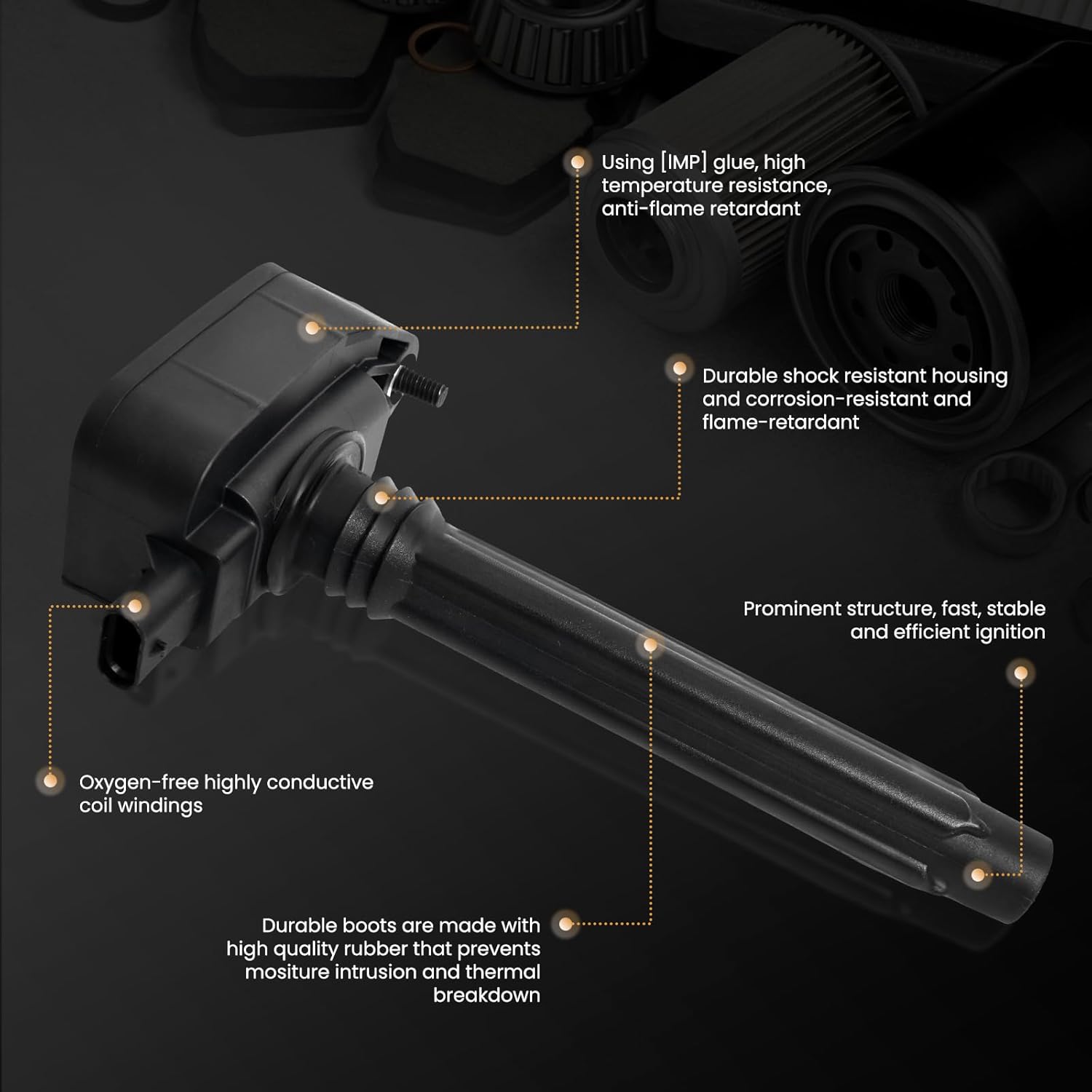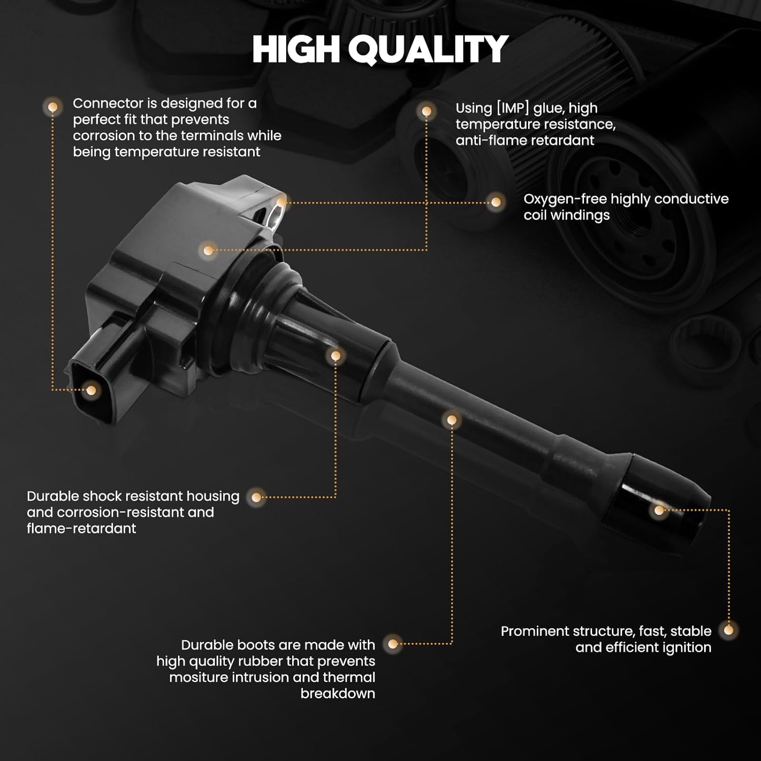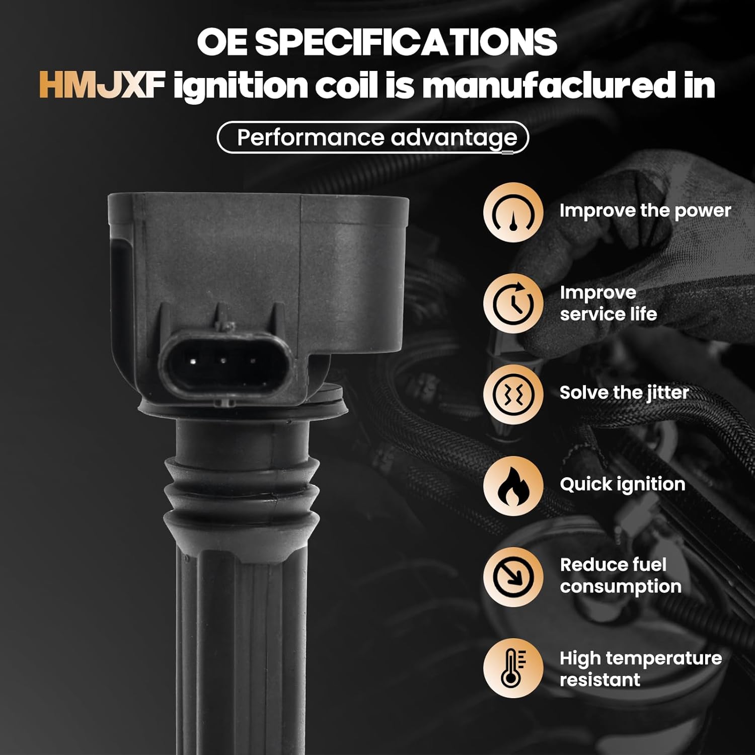 [RESOLVE PROBLEMAS COMUNS DO SISTEMA DE IGNIÇÃO]: As bobinas de ignição HMJXF são eficazes na resolução de problemas comuns, como retrocesso, falhas de ignição, engasgos, tremores do motor e marcha lenta irregular. Elas também aumentam a potência de saída para um desempenho máximo do motor. Além disso, essas bobinas monitoram a luz de verificação do motor para falhas de circuito e engasgos severos.