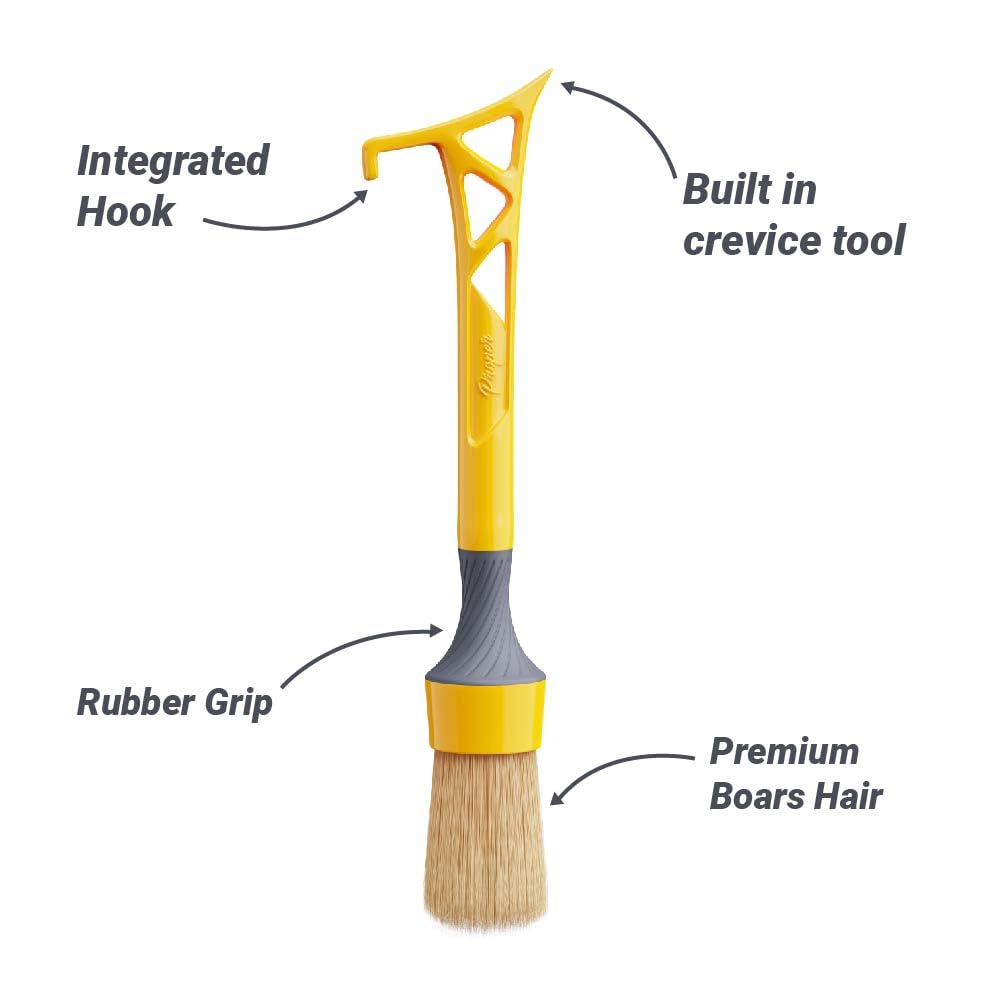 Lots of thought out features on this detailing brush, premium feel and does an amazing job getting gunk out of small spaces with the hooks on the end. Worth every penny