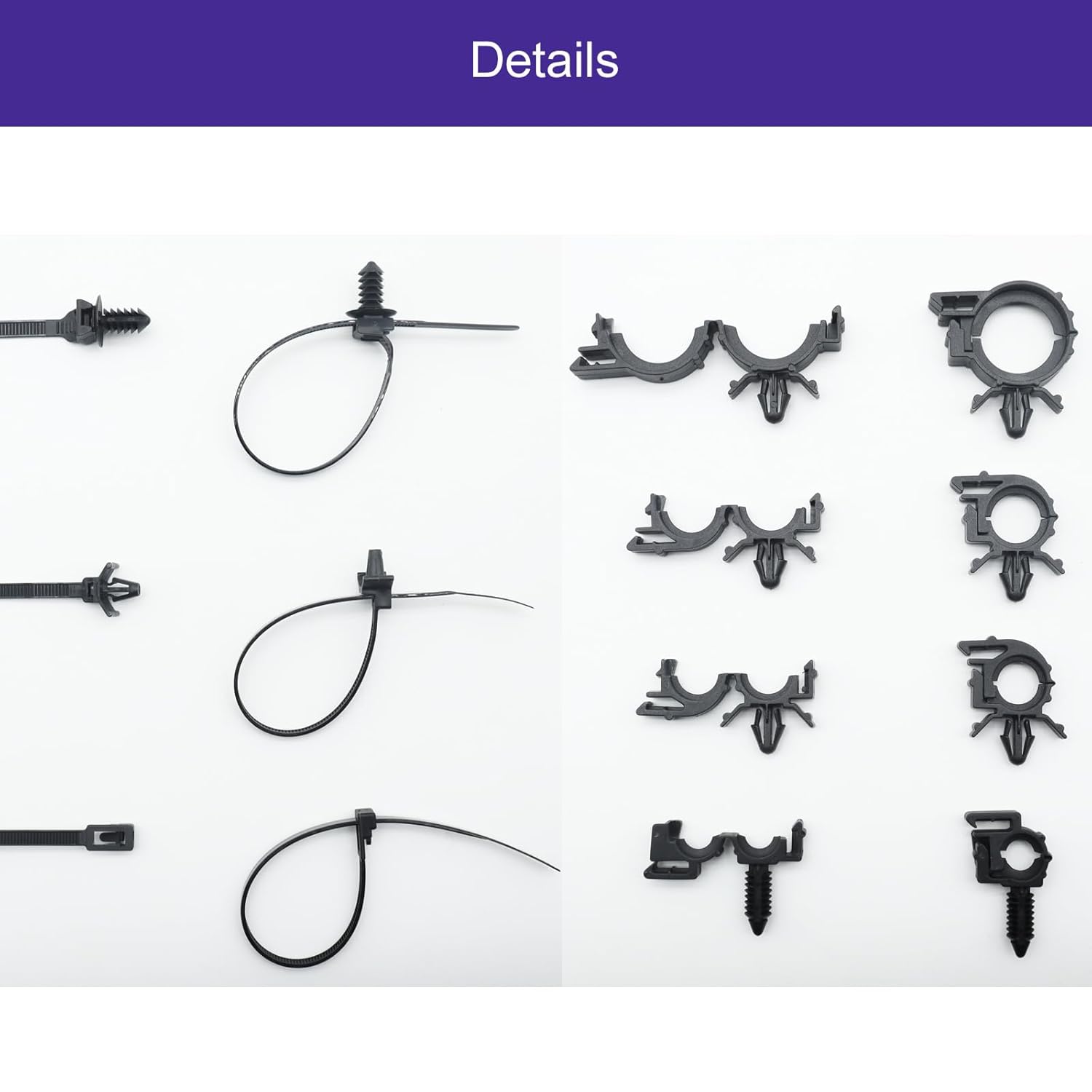 The variety of these sizes and the clip strength are making a world of difference for me while restoring a 1987 porsche. Alot of the tubes, pipes and wires are old and need to be held up in place while working with other parts and secured while I hunt down original replacement parts. These zipties are expertly sized and workable for all the different spots I’m working in. I have much more confidence in these with the clamps than zipties on their own now.