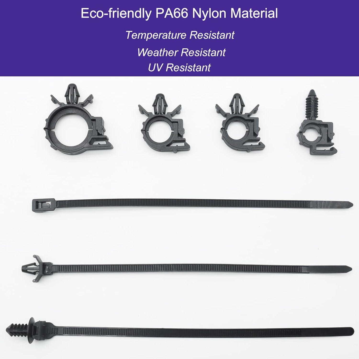 – Material: Nylon plástico de alta qualidade, resistente e durável, ideal para uso em ambientes automotivos.