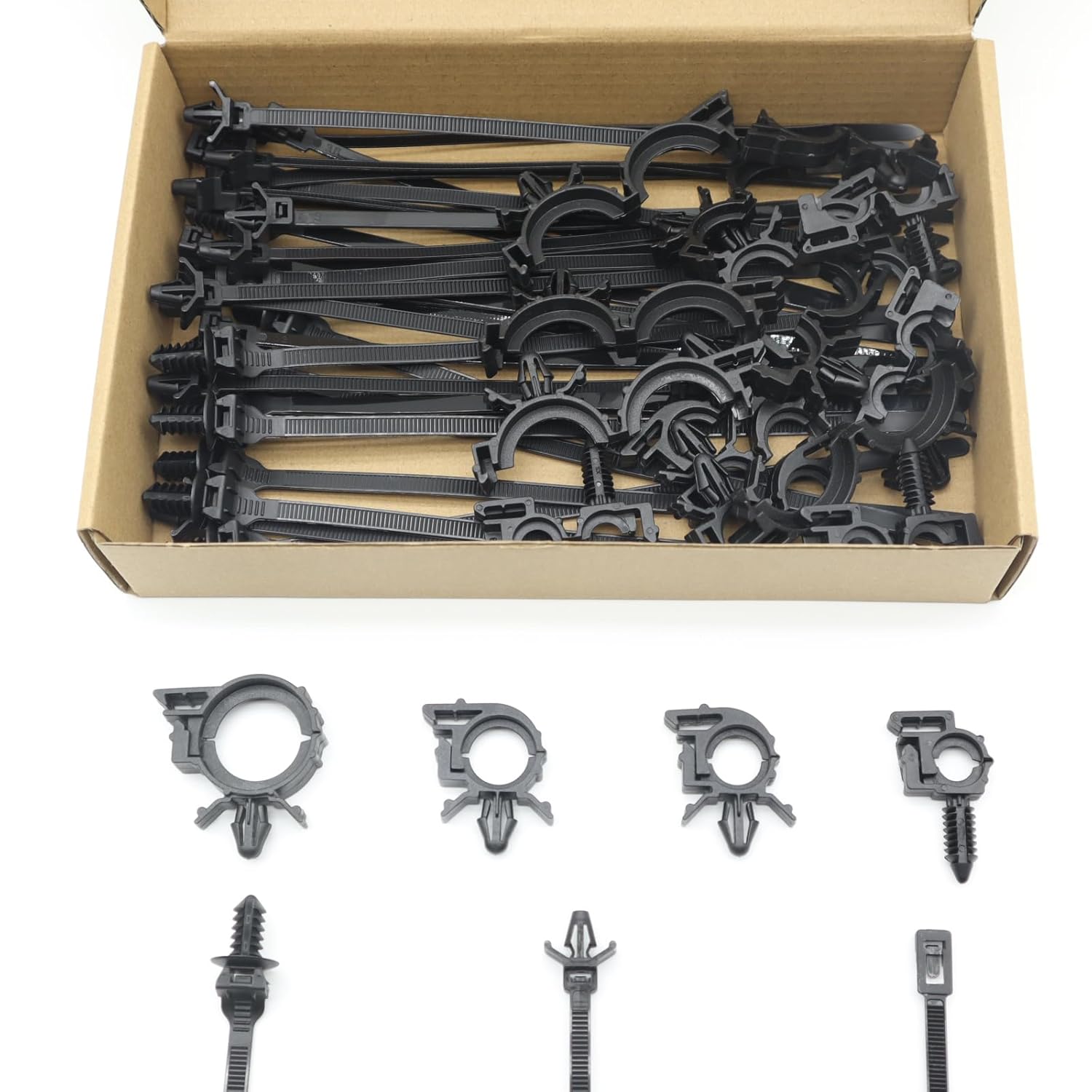 Descrição do Produto: Kit de Clipes de Montagem Universal para Cabos com Zíper e Clips de Loom Automotivo (50 peças)
