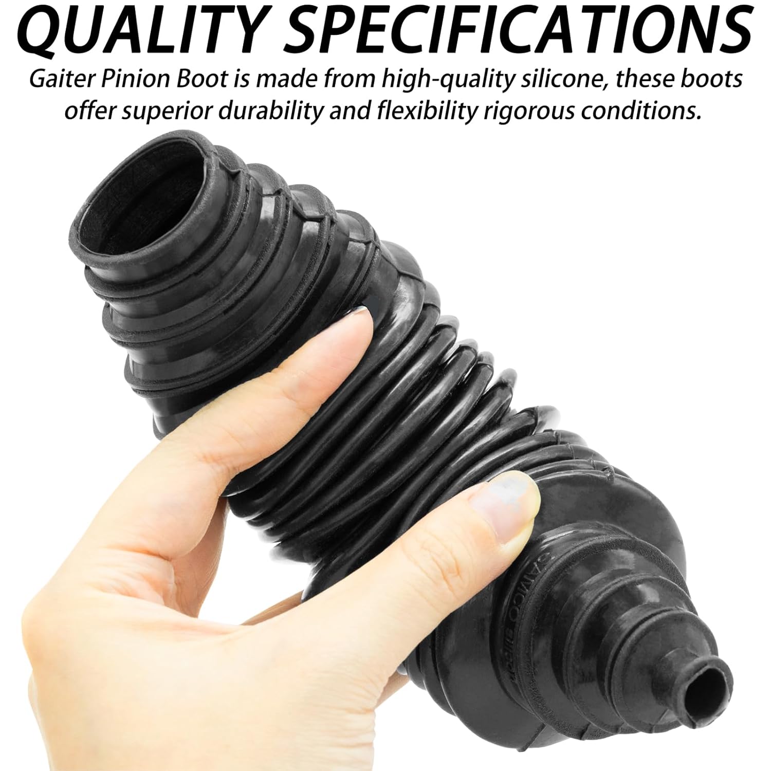 Fabricado em silicone de alta qualidade, o gaiter de pinhão oferece uma durabilidade superior e flexibilidade, mesmo em condições rigorosas. Com dimensões de 8,6 x 2,3 polegadas (22 x 6 cm), o gaiter pode ser facilmente cortado para se ajustar a qualquer tamanho específico que você necessite, tornando-o compatível com a maioria dos veículos no mercado. Além disso, esses gaiters são projetados para proteger efetivamente o rack e pinhão de contaminantes que podem causar desgaste e danos, garantindo uma vida útil mais longa para o seu sistema de direção.