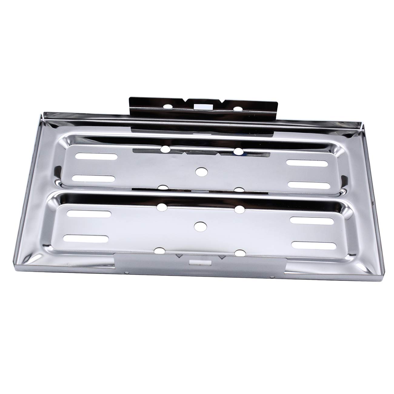 Normal battery is a half inch too long for tray. Had to bend one lip down for fit. Width is good. Nice tray. Also, the upright rods are not stainless unfortunately.