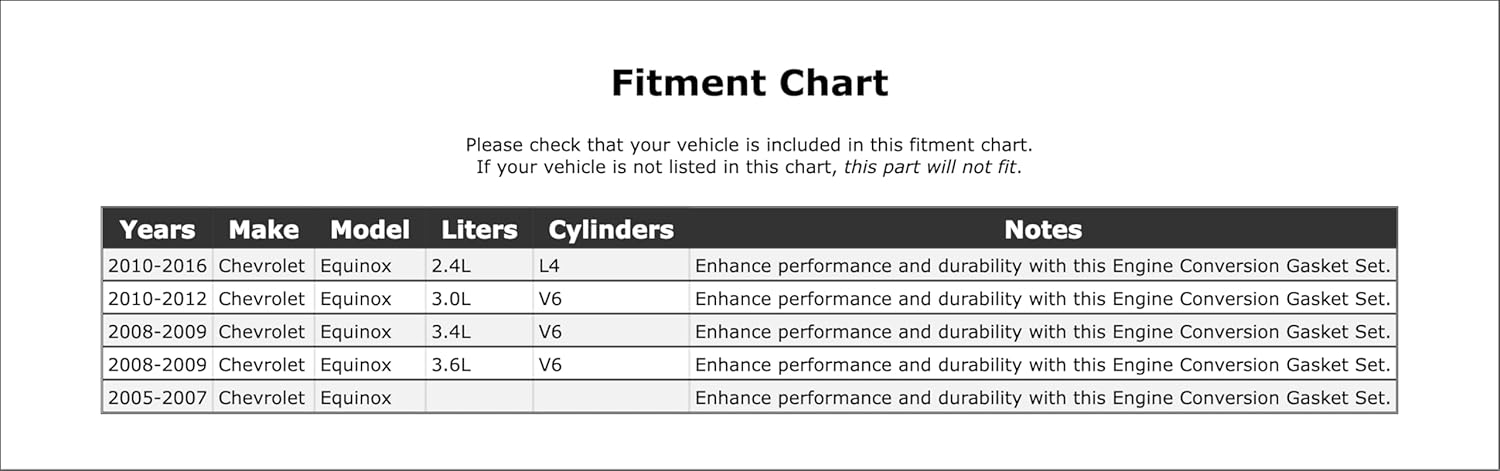 O Kit de O-Ring para Injetor de Combustível Superior é a solução ideal para quem busca qualidade e desempenho excepcionais em seu Chevrolet Equinox, abrangendo os modelos de 2005 a 2016. Este kit inclui 1 (um) O-Ring de injetor de combustível, projetado especificamente para se encaixar na parte superior dos veículos listados na galeria de imagens.