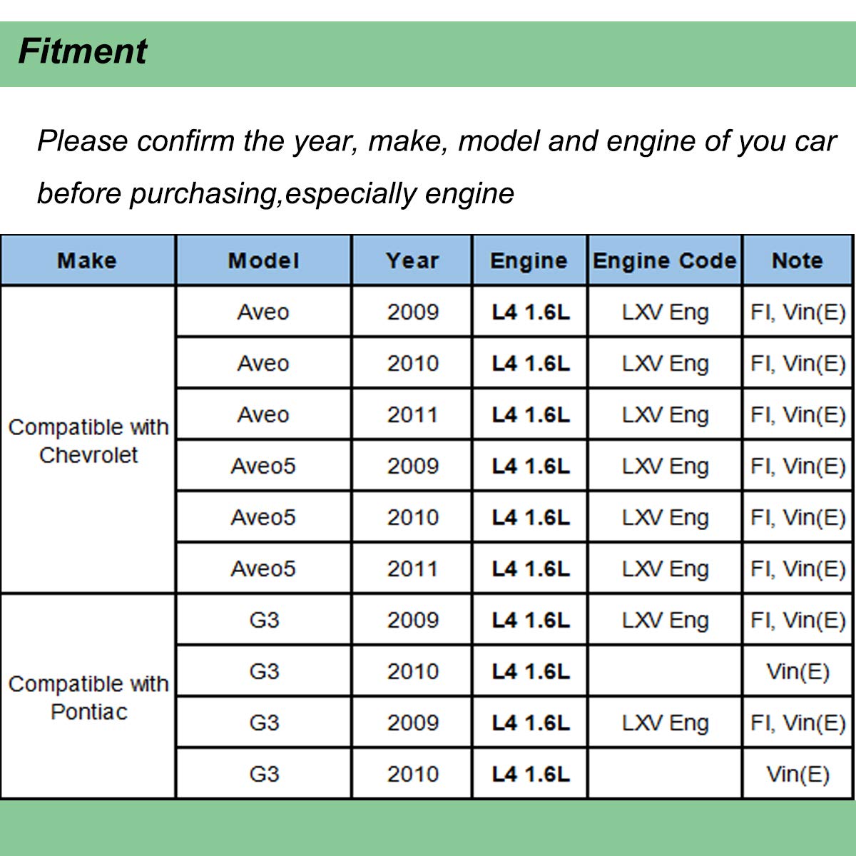 – Compatibilidade: Projetado para Chevrolet Aveo/Aveo5 (2009-2011) e Pontiac G3 (2009-2010) com motor L4 1.6L.