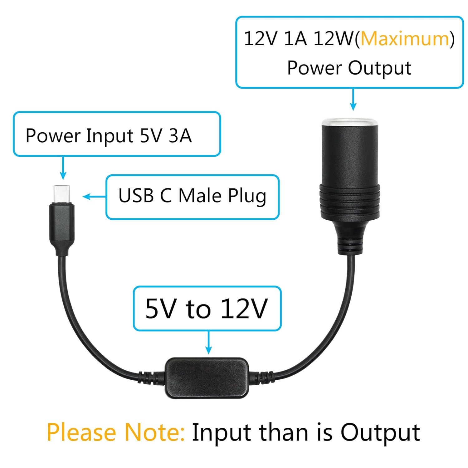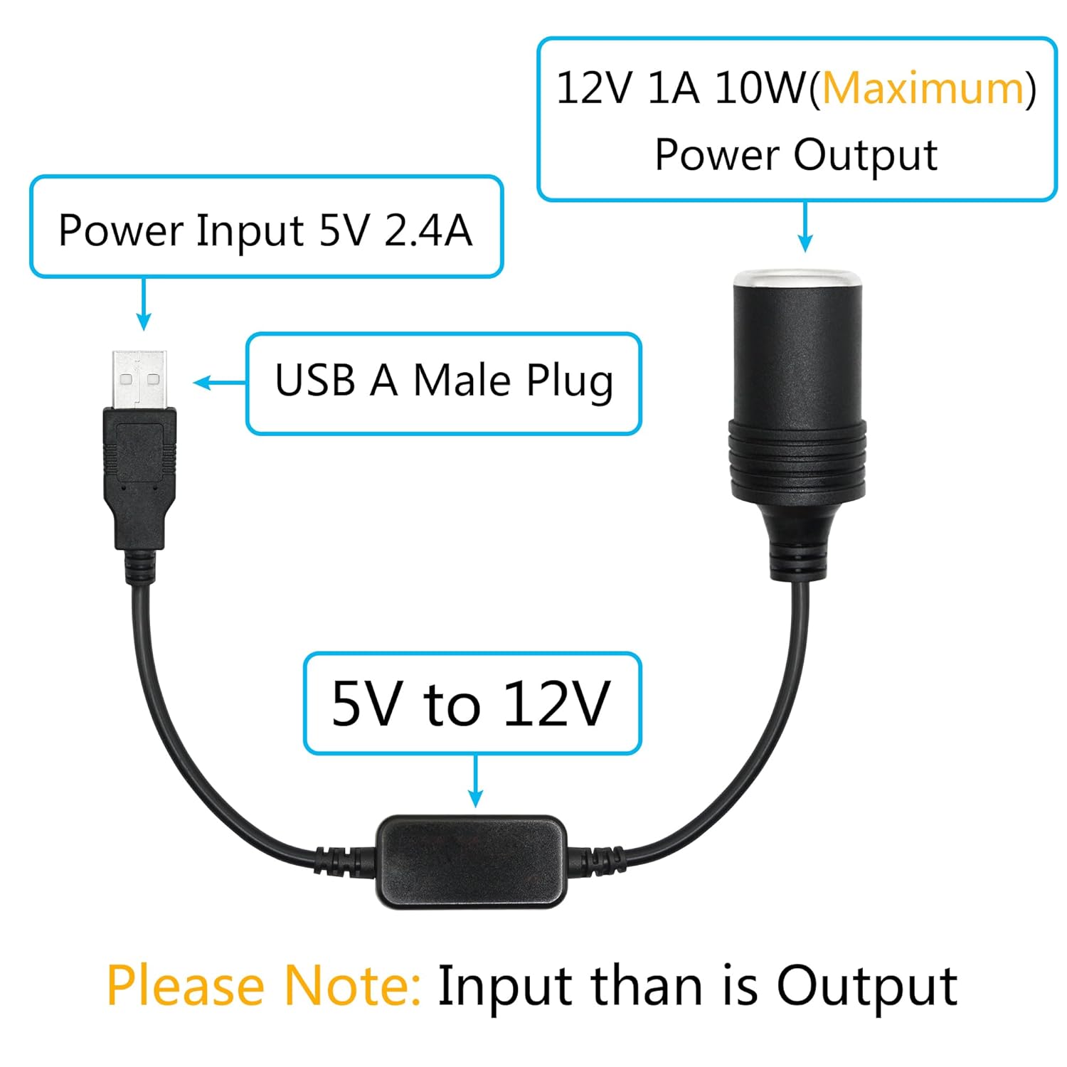【Por Favor, Note】 Este adaptador converte a tensão de 5V para 12V, com uma corrente de entrada que varia entre 2A a 2.4A e uma saída máxima de 1A, com potência máxima de 10W. Para garantir um funcionamento estável, é essencial que a fonte de alimentação forneça 5V/2.4A, especialmente ao utilizar dispositivos que consomem até 10W, como câmeras de painel.