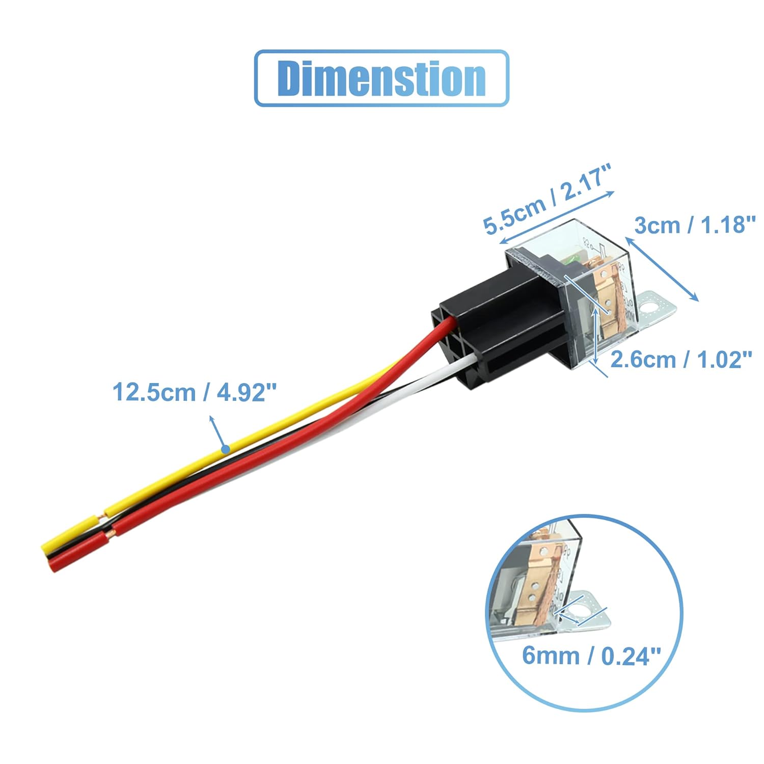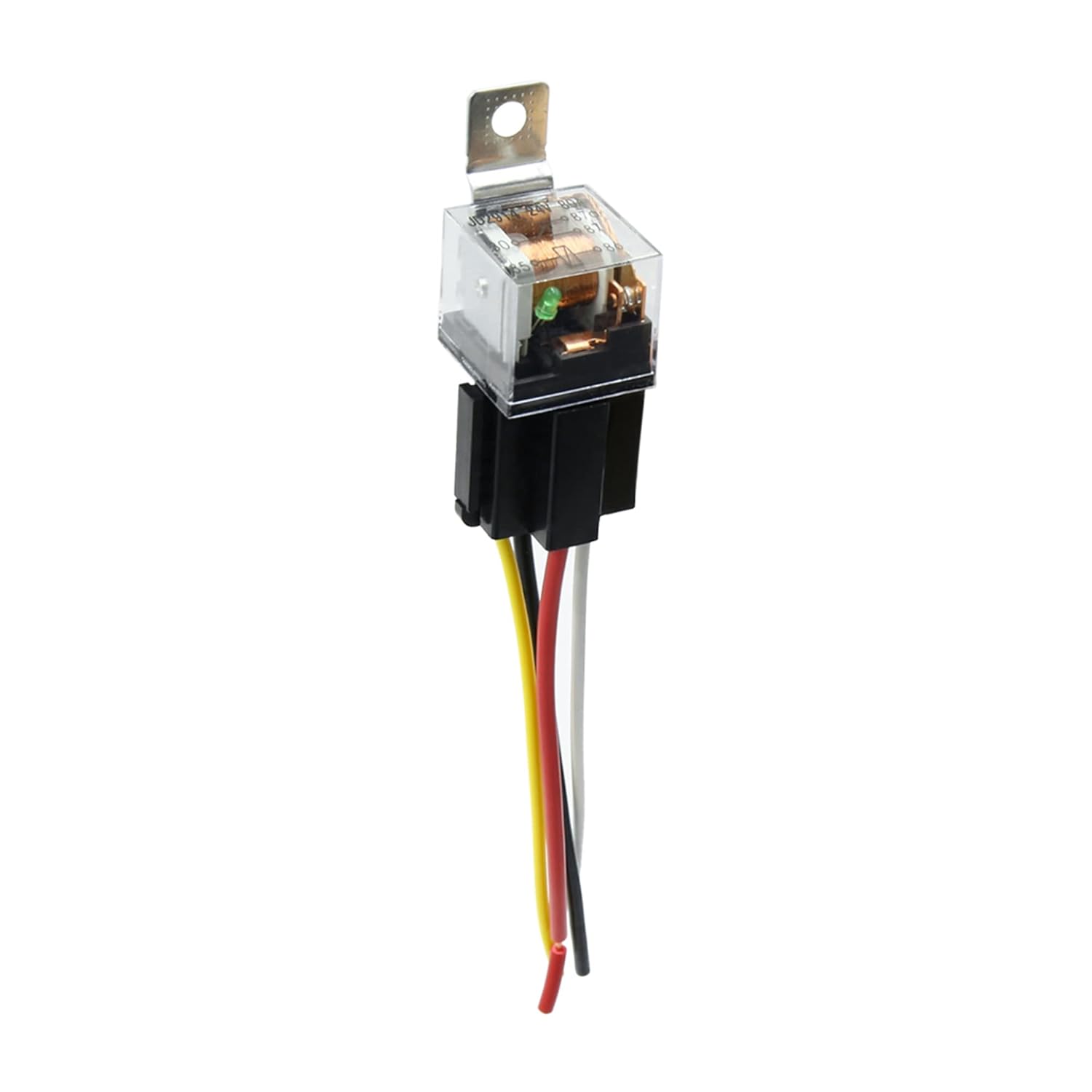 O relé de fusível universal uxcell JD-2914 é uma solução robusta e confiável para veículos, projetado para suportar até 80A de corrente em um sistema de 24V DC. Com 4 pinos, este relé é ideal para automóveis e motocicletas, oferecendo uma conexão segura e eficiente para diversos componentes elétricos. A configuração dos fios é simples e intuitiva: o fio preto é destinado à entrada de energia (Pino 30), o branco é o positivo (Pino 85), o amarelo é o negativo (Pino 86) e o vermelho é a saída normalmente aberta (Pino 87). Quando os pinos 85 e 86 recebem energia, os pinos 30 e 87 se conectam, permitindo que a corrente flua e acenda a luz indicadora.