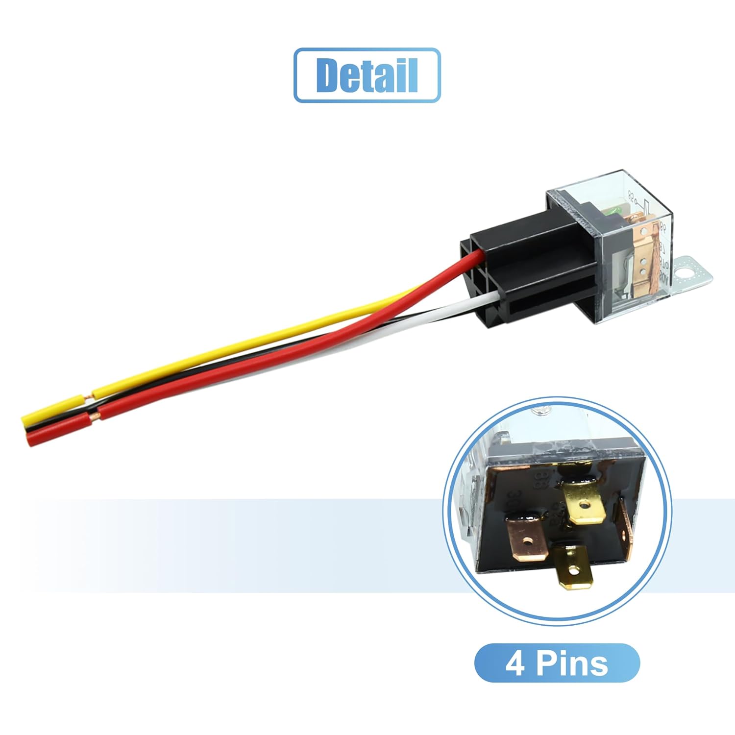 This product is a 5 pin relay not a 4 pin. False representation. Needed it for a project and now have to return it and wait for a different one to ship. The pictures are wrong and 2 of the wires are completely stripped and broke.
