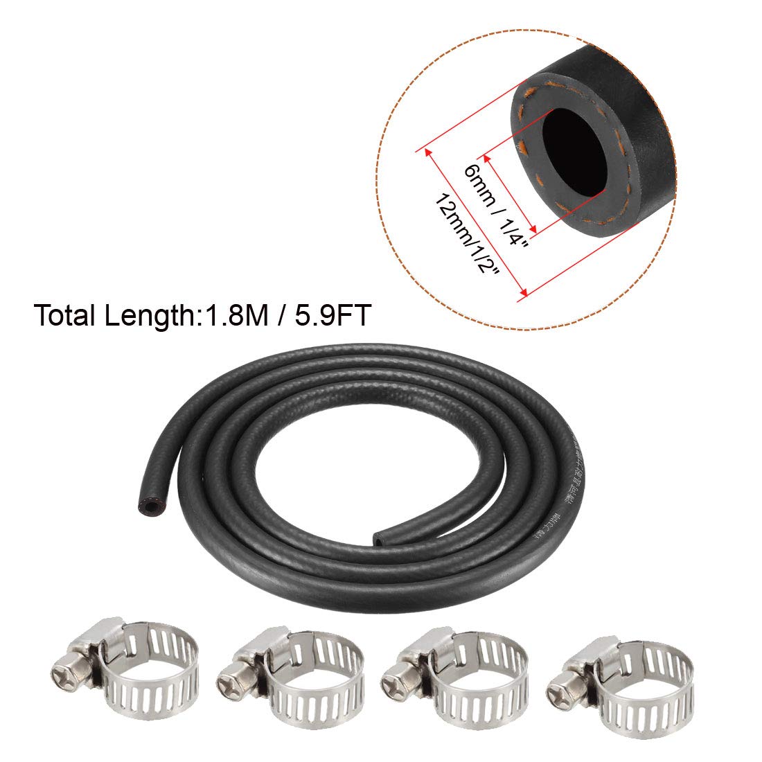 Mangueira de Combustível uxcell 6mm I.D. 1.8M Borracha Diesel Gasolina com 4 Abraçadeiras