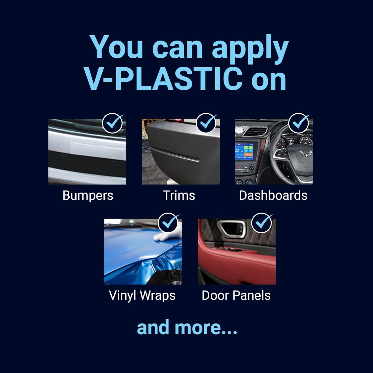 Com resistência aos raios UV e uma robusta repelência a sujeira e água, o V-Plastic não apenas estende a vida útil das superfícies plásticas, mas também mantém a aparência impecável do seu veículo por até dois anos. A inovação do V-Plastic na proteção automotiva garante durabilidade contra os elementos e o desgaste do tempo, fazendo dele uma escolha inteligente para quem valoriza a estética e a preservação do automóvel.