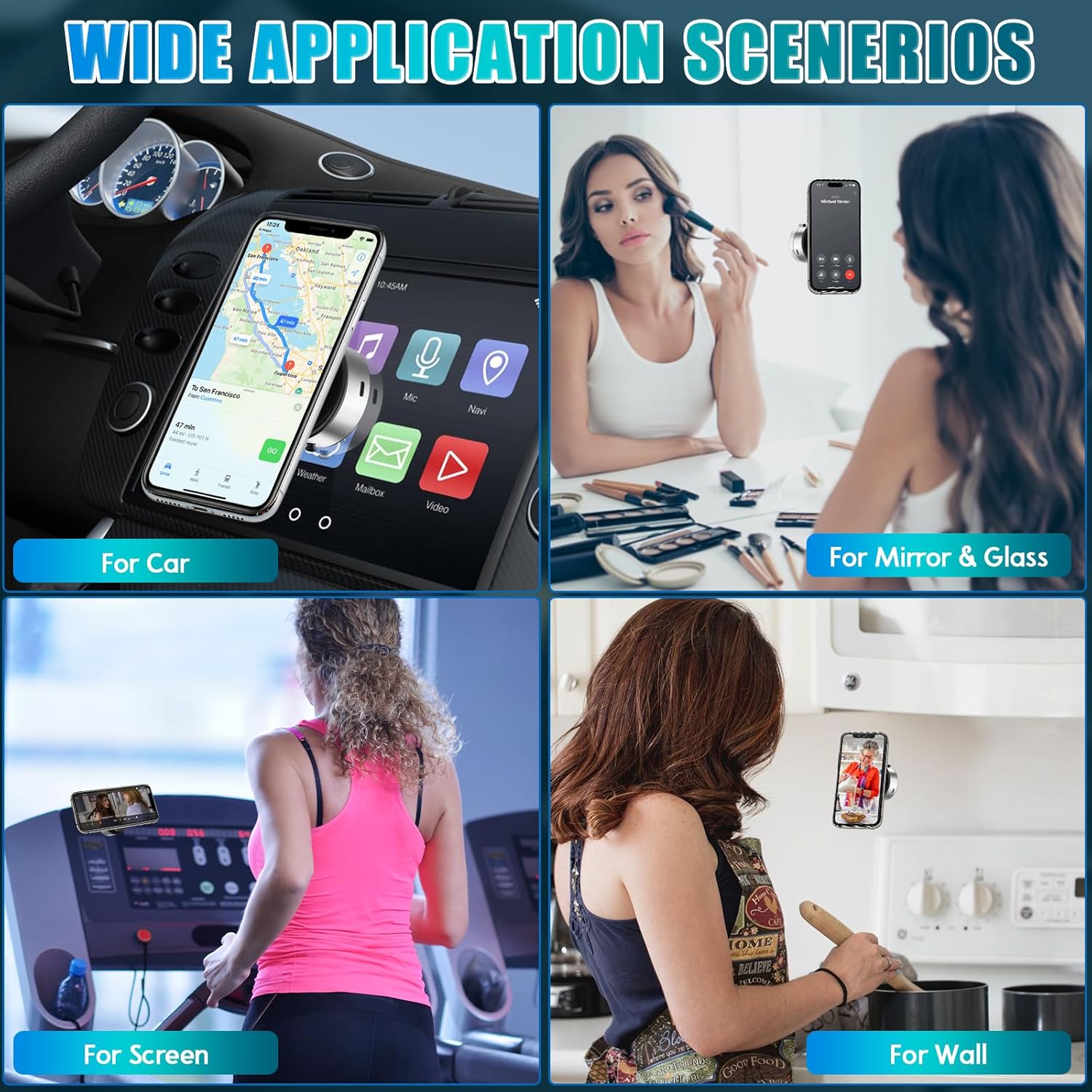 My friend recommended me this multifunctional 360 rotatable electric suction cup magnetic phone holder, and its works really well, which will automatically adhere to almost any smooth and flat surface in my car like car screen, windshiled and window and rearview mirror. And sometimes I like to use it in the gym to stick it on the treadmill to watch video and sometimes put it on my desk as common phone stand. Satisified.