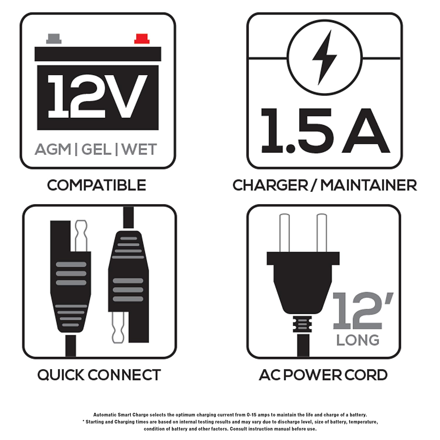 O carregador de bateria VECTOR 1.5 Amp é a escolha ideal para quem busca um carregamento eficiente e prático. Com sua compatibilidade para sistemas de 6V e 12V, incluindo baterias AGM, GEL e WET, este carregador se destaca como uma ferramenta versátil para uma variedade de veículos, como motocicletas, carros, barcos, caminhões, RVs e scooters. A tecnologia totalmente automática do VECTOR 1.5 Amp permite que ele detecte a condição da bateria, inicie o processo de carga e, ao final, transite para o modo flutuação, garantindo que a bateria permaneça em condições ideais e prolongando sua vida útil.