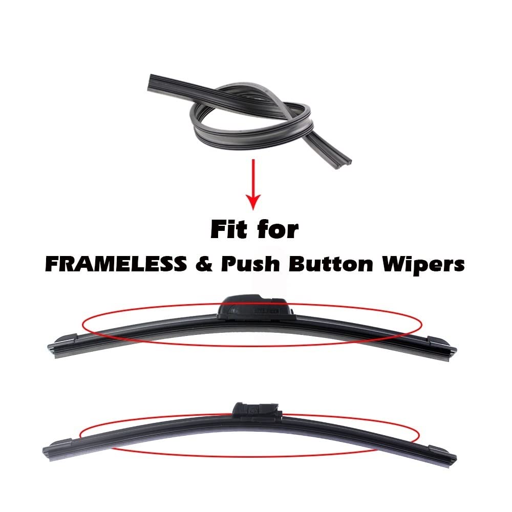 – Tipo: Tiras de reposição para limpadores de para-brisa sem estrutura (bracketless/frameless).
