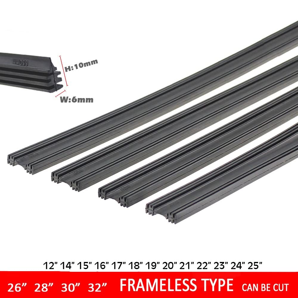 Conjunto de 4 tiras de reposição de borracha para limpadores de para-brisa sem armação, compatíveis com limpadores de 6mm e tamanhos de 12″ a 32″. Oferecem desempenho em todas as condições climáticas, garantindo visibilidade clara e segurança ao dirigir. Fácil instalação e durabilidade, ideal para quem busca eficiência e qualidade nos acessórios automotivos.
