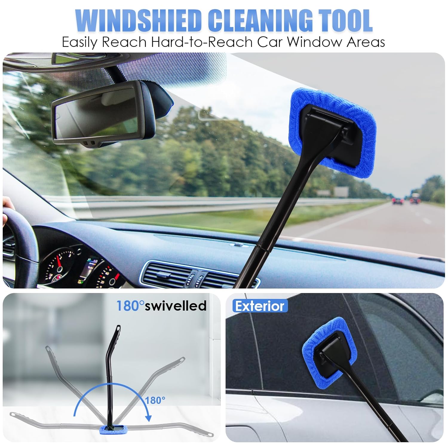 O limpador de para-brisa é projetado com uma cabeça triangular que gira 180°, permitindo um contato completo com o vidro. Isso facilita a limpeza das janelas do carro e de áreas de difícil acesso. O kit também inclui 3 escovas de arame em diferentes estilos, que ajudam a remover ferrugem e detritos sem danificar a pintura do veículo.
