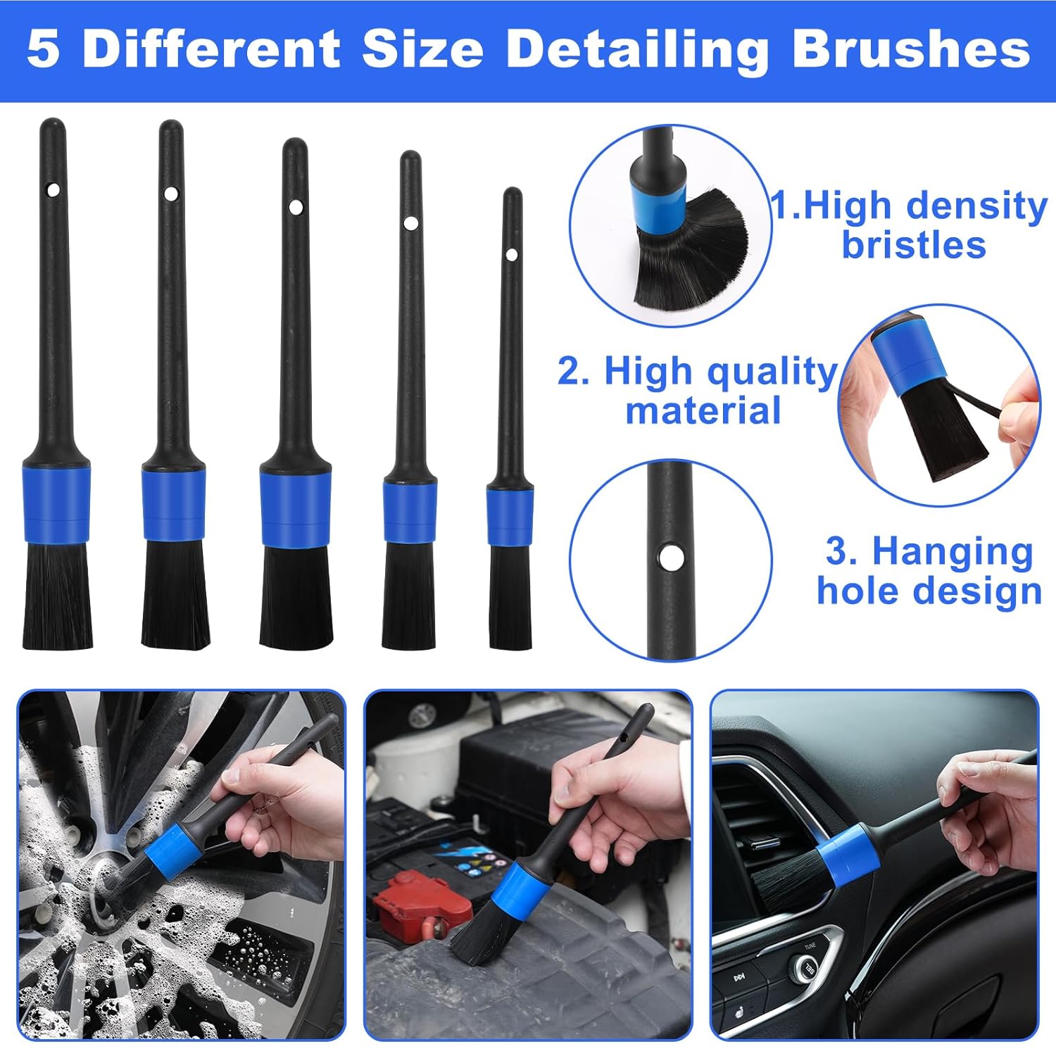 – Escovas de Detalhamento: Três tamanhos para diferentes superfícies, incluindo ferramentas específicas para ventilação.
