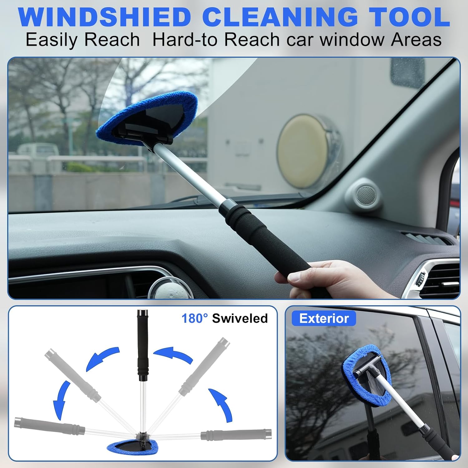 O Limpador de Para-brisa possui um cabo extensível e uma cabeça giratória de 180°, permitindo que o instrumento se adapte perfeitamente à superfície do vidro e remova facilmente poeira e sujeira de áreas de difícil acesso. Acompanha duas almofadas de microfibra laváveis, garantindo uma limpeza sem manchas. Seu design econômico assegura um uso prolongado em janelas e espelhos automotivos.