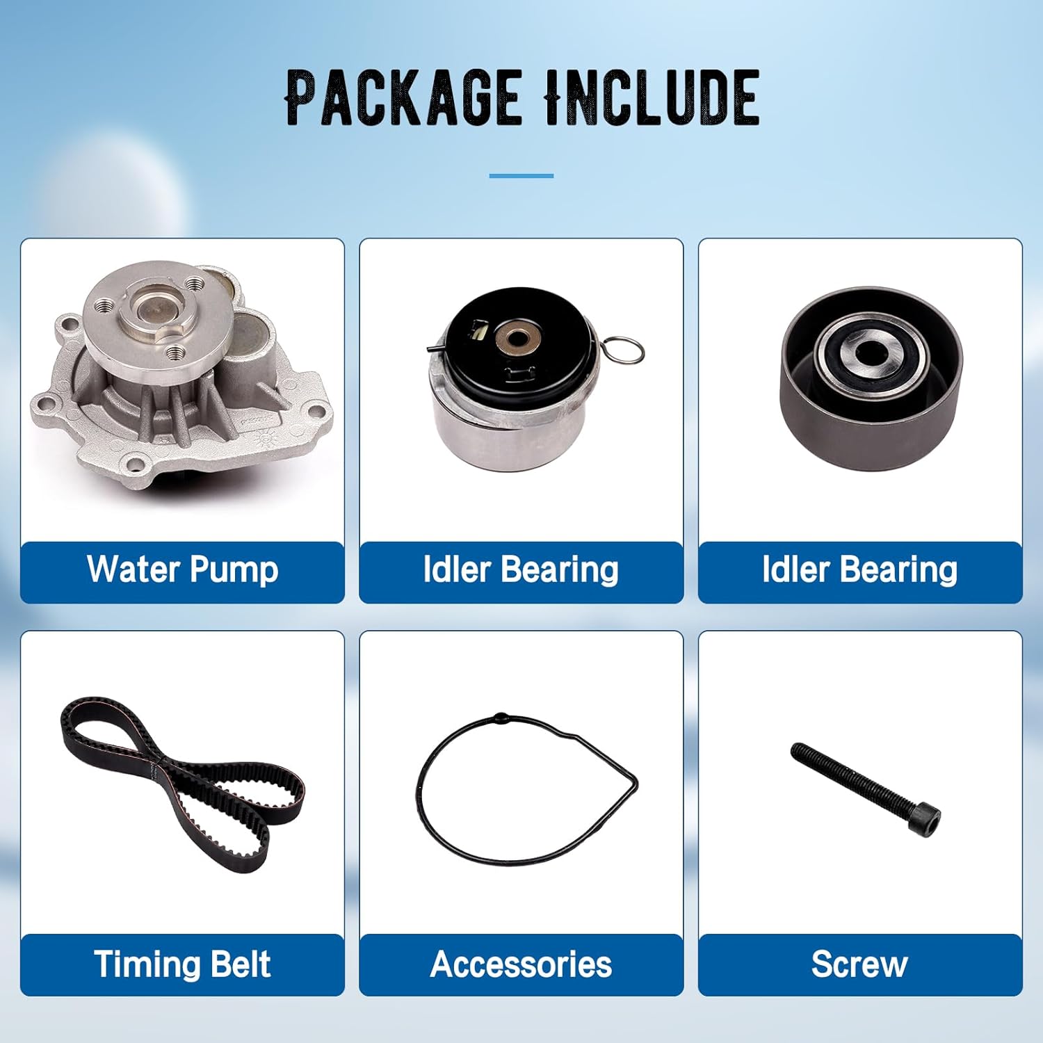 - Pacote do Kit: O kit inclui componentes originais compatíveis – Correia de Sincronização, Tensionador de Correia, Roda Guia, Bomba d’Água, tudo embalado em uma caixa conveniente pronta para instalação.