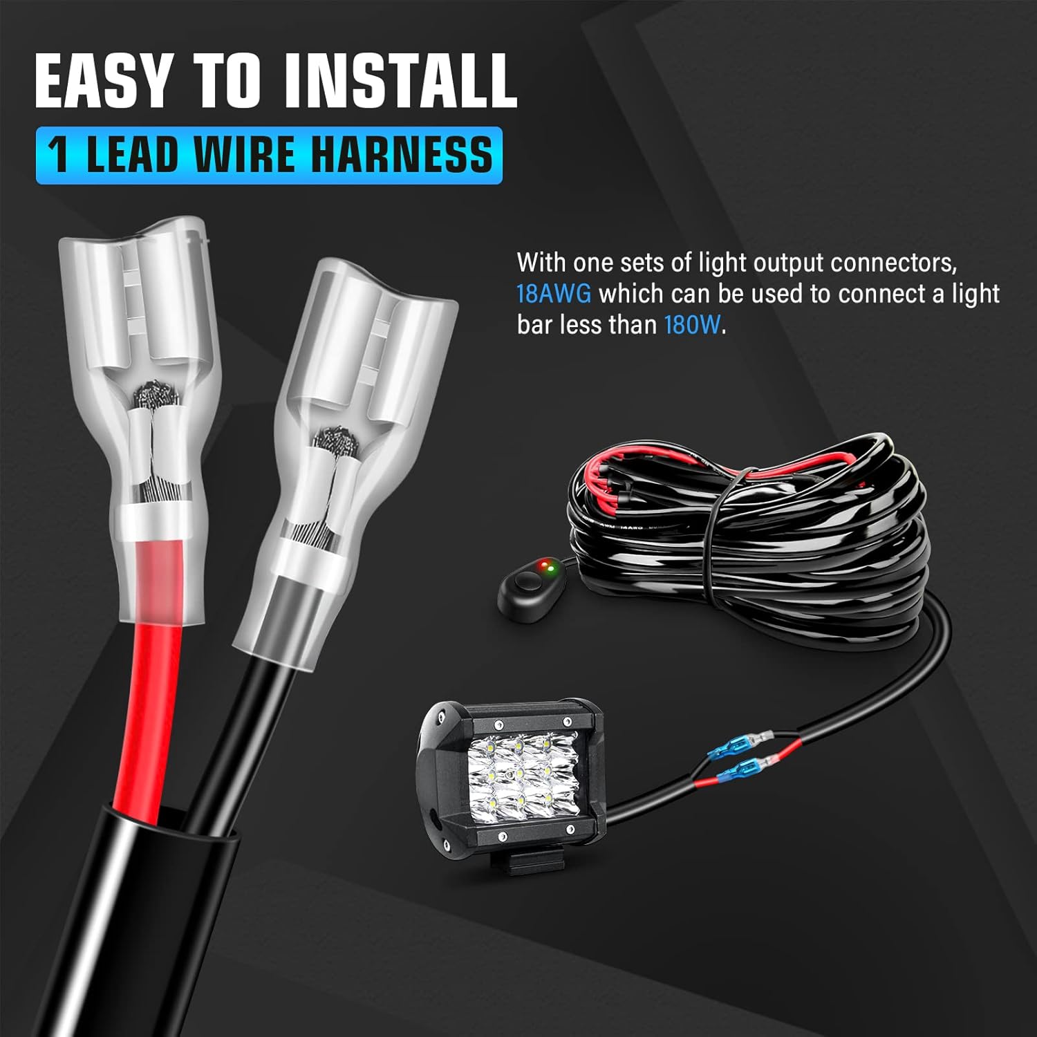 - Kit de Fiação Universal: Com fios de cobre flexíveis, o kit suporta uma carga de até 180 watts, tornando-se compatível com qualquer barra de luz LED que se enquadre nesse limite. É perfeito para uma ampla gama de veículos, desde carros e caminhões até utilitários off-road.