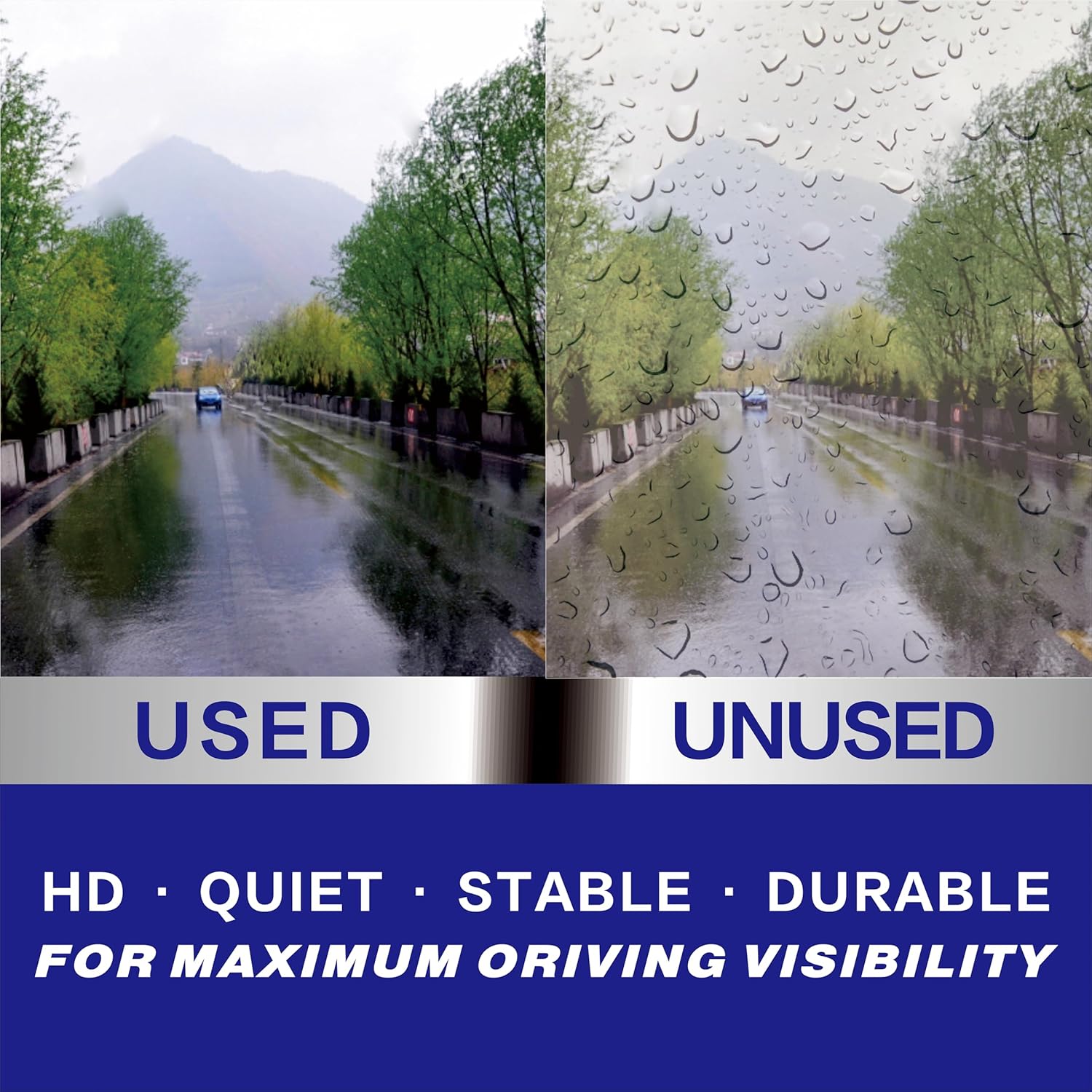 A instalação das lâminas de limpador é rápida e fácil, com braços de 28″ e 18″ que se encaixam perfeitamente, sem a necessidade de adaptadores complicados. Feitas de um aço de alta liga de carbono médio, as lâminas são projetadas para resistir à deformação e ao empenamento, mesmo durante chuvas intensas. O material de borracha de silicone ABSP garante uma limpeza clara e eficaz, além de ser macio e durável, proporcionando ao motorista um campo de visão ideal.