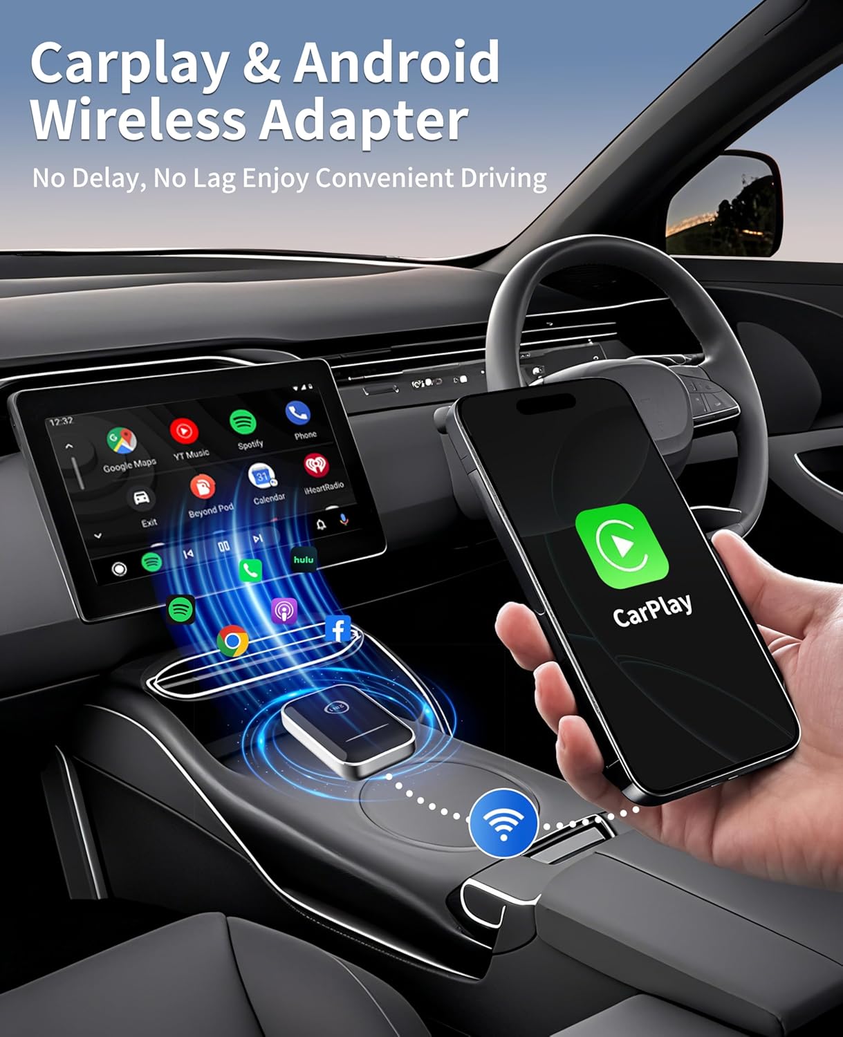 Adaptador Wireless CarPlay para iPhone – Upgrade 2025 2 em 1 CarPlay