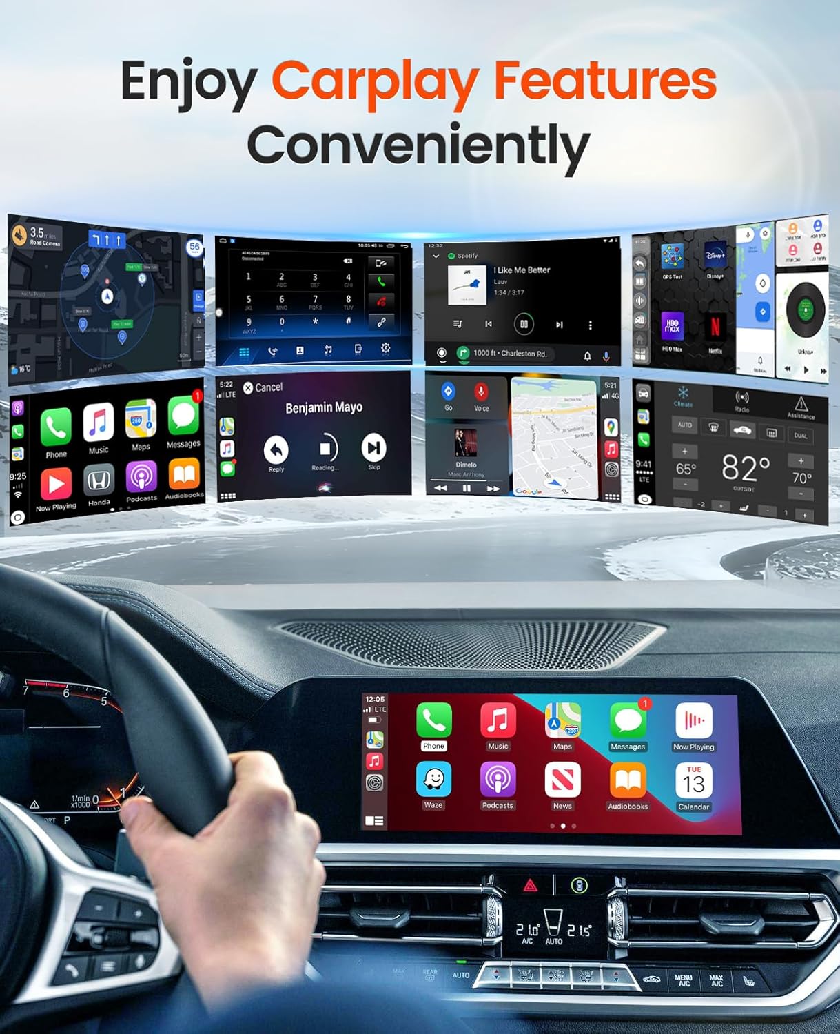 – Conexão Sem Fio: Transforma CarPlay com fio em sem fio via WiFi/Bluetooth.