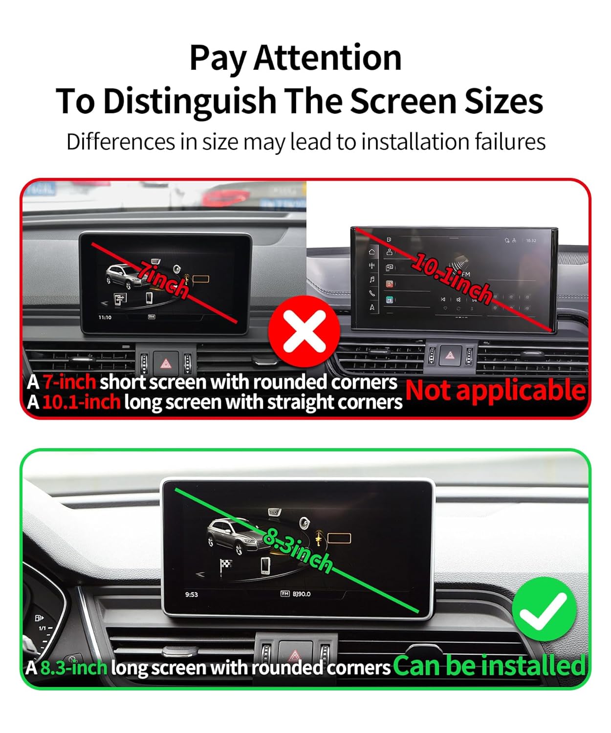 – Dimensões: Compatível com telas de 8,3 polegadas, com um design que se integra perfeitamente ao painel do Audi.