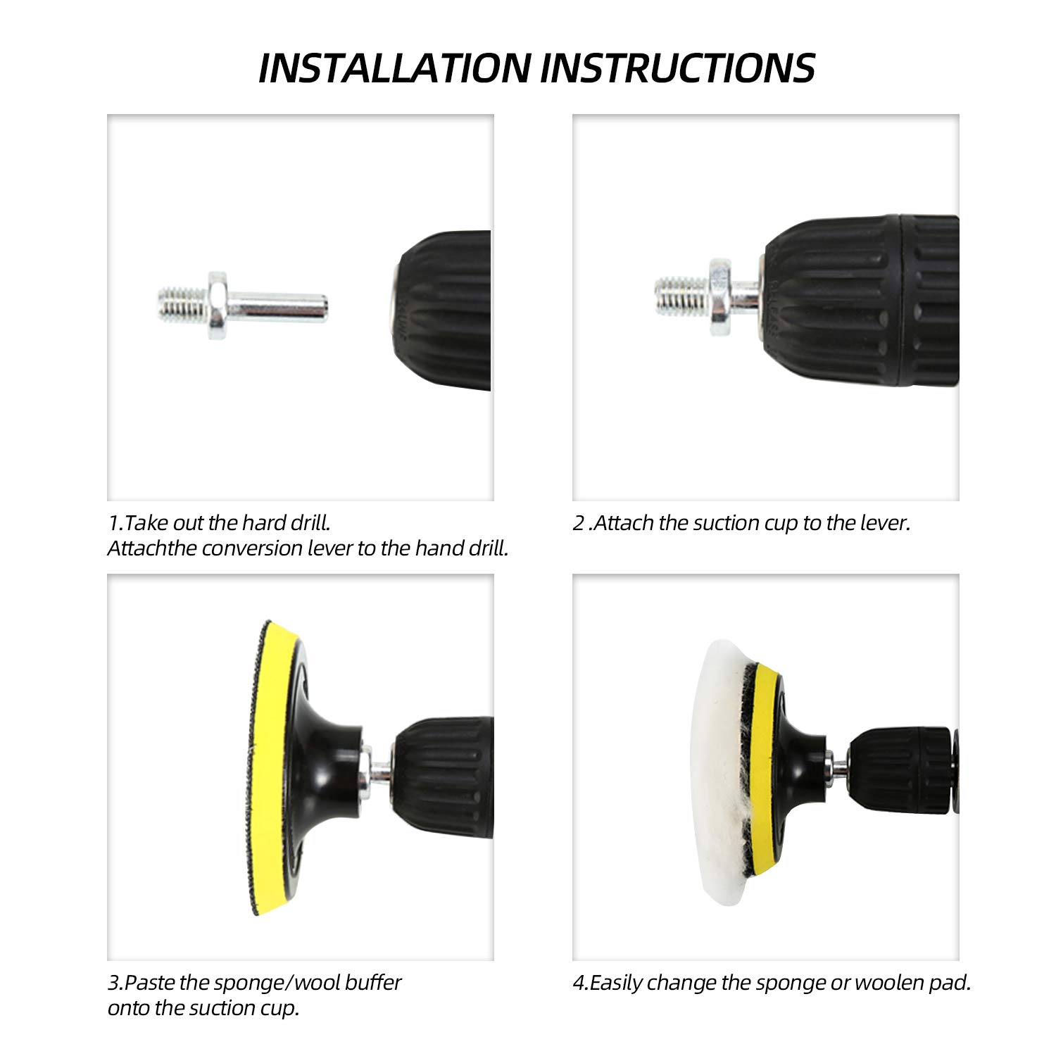 2. Montagem: Conecte a almofada de polimento ao mandril da furadeira, garantindo que esteja bem fixada.