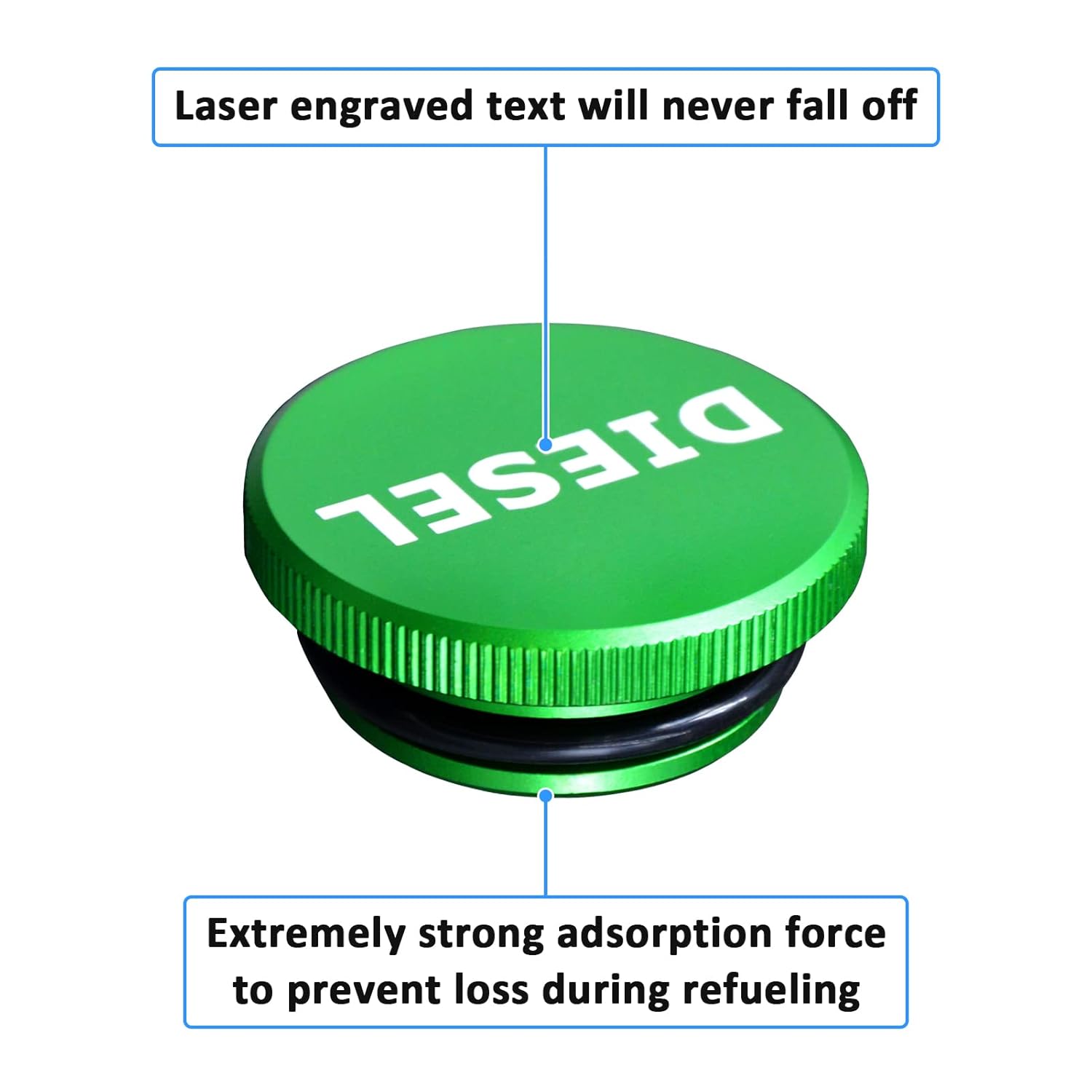 The diesel cap is magnetic, which is great when your filling up, just hold it against the truck. The DEF one is not magnetic, but they are both striking in their looks and better than the standard.