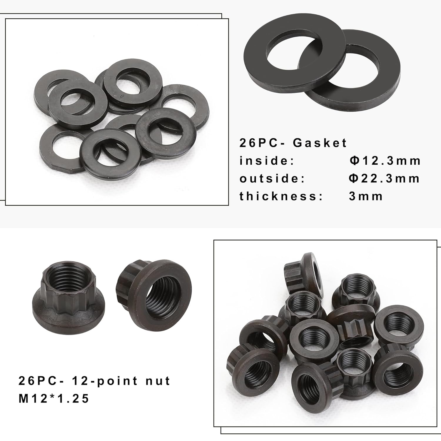 – Comprehensive Kit: Inclui 20 parafusos de cabeçote M12 x 160mm, 6 parafusos de cabeçote M12 x 168mm, 26 porcas e 26 arruelas paralelas endurecidas.