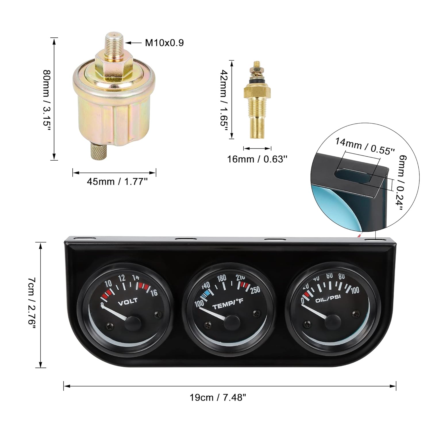 O X AUTOHAUX Car 3 in 1 Fahrenheit Water Temperature Gauge Oil Pressure Gauge Voltmeter Voltage Gauge Triple Measure Gauge Kit with Sensor é a solução ideal para quem busca precisão e confiabilidade em medições automotivas. Este kit de medidores combina três funções essenciais em um único dispositivo, permitindo que você monitore a pressão do óleo, a temperatura da água e a voltagem do seu veículo de forma prática e eficiente.