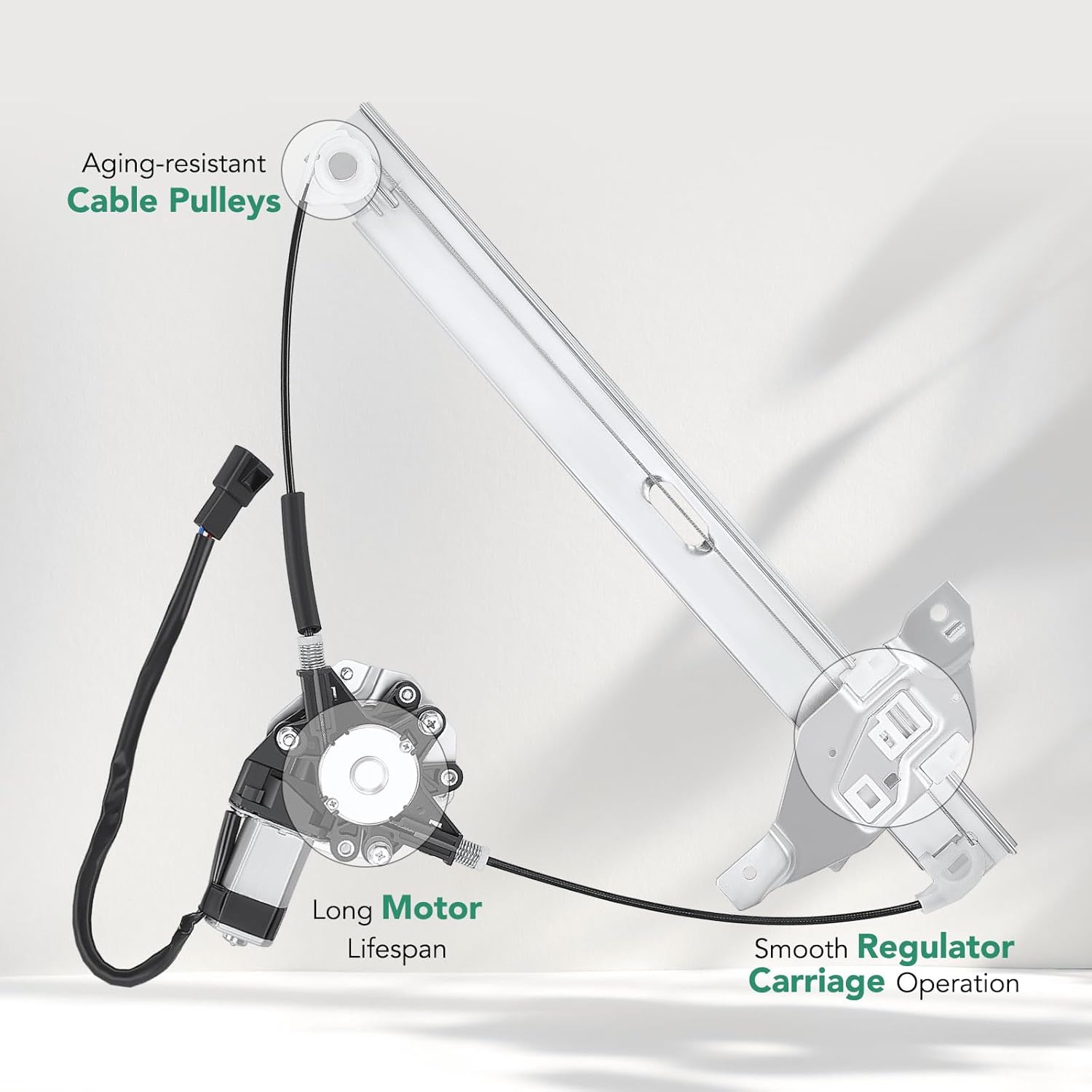 – Operação Estável: Após rigorosos testes de até 30.000 ciclos, o regulador de janela foi projetado para garantir que o relé, cabos, clipes e polias sejam duráveis e atendam aos padrões exigidos. Os kits de hardware do regulador de janela são construídos para suportar temperaturas de -10°F a 150°F, assegurando um funcionamento suave mesmo em condições climáticas adversas.