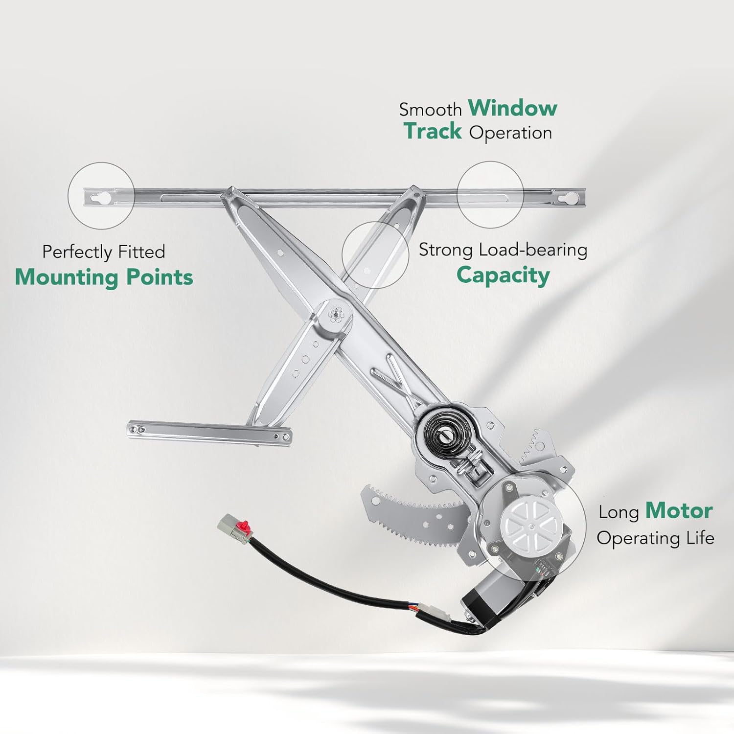 - Experiência Silenciosa e Confortável: A operação do regulador de janela é extremamente silenciosa, com níveis de ruído abaixo de 50 decibéis, proporcionando um ambiente de condução tranquilo e sem interrupções, permitindo que você se concentre na estrada à frente.
