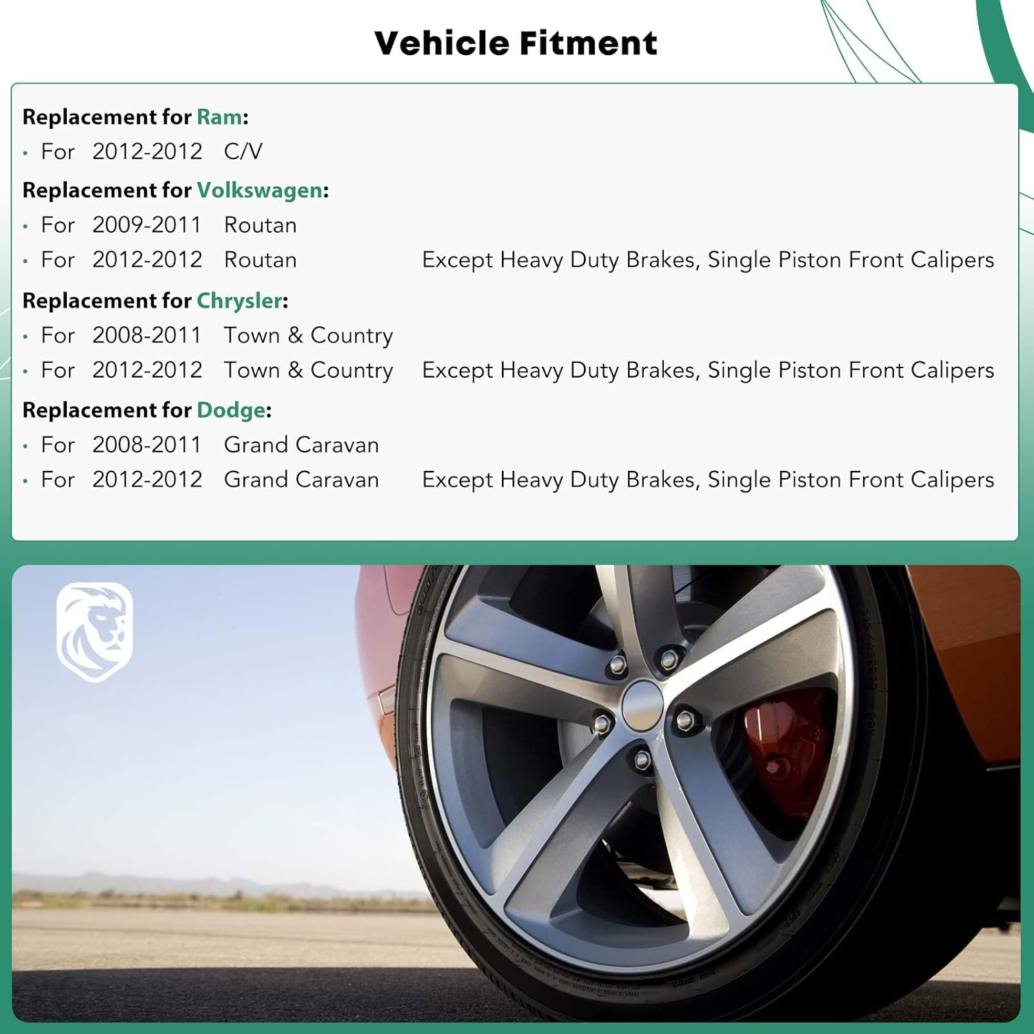 Compatibilidade: É importante ressaltar que, para veículos de 2012, esses calipers não são compatíveis com freios pesados, sendo adequados apenas para modelos com calipers de pistão único. Os números de referência OE incluem 68029849AA, 68029849AB, 7B0615423, 7B0615423A, 18-B5081, 18-P5081 e 18-5081. Para garantir a compatibilidade, utilize a ferramenta de ajuste confirmada da Amazon.