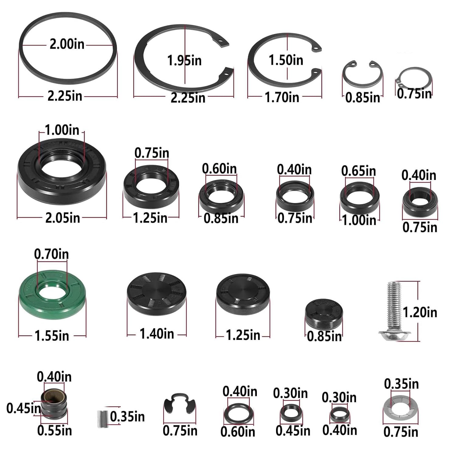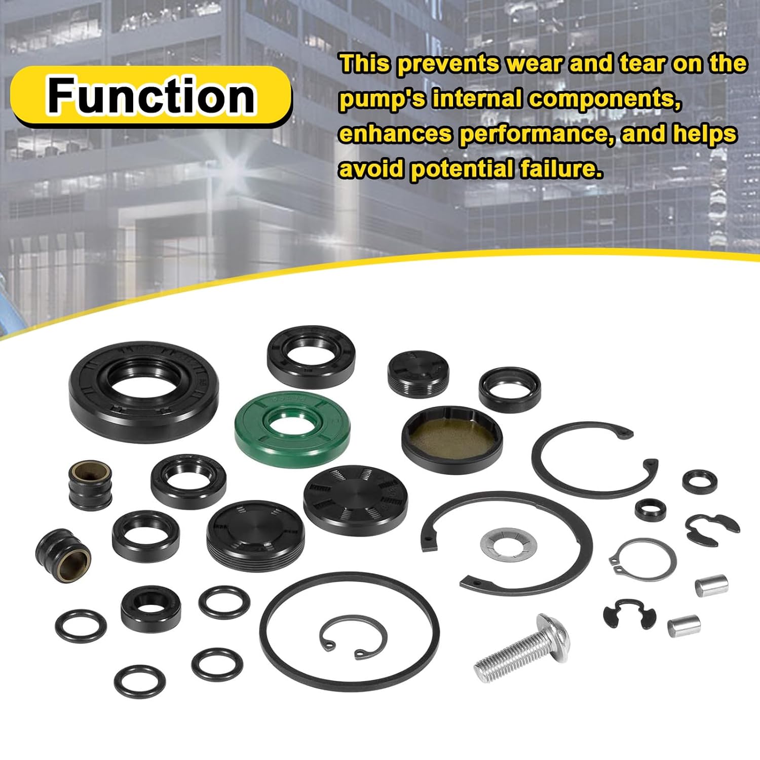 – Componentes Inclusos: O kit inclui selos de poeira, O-rings, C-clips, gaxetas e selos de lábio, todos projetados para maximizar a eficiência da bomba.