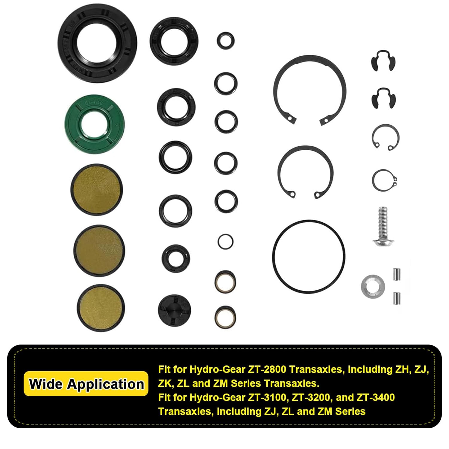 – Compatibilidade: Projetado para transaxles Hydro-Gear ZT-2800, ZT-3100, ZT-3200 e ZT-3400, além das séries ZH, ZJ, ZK, ZL e ZM.