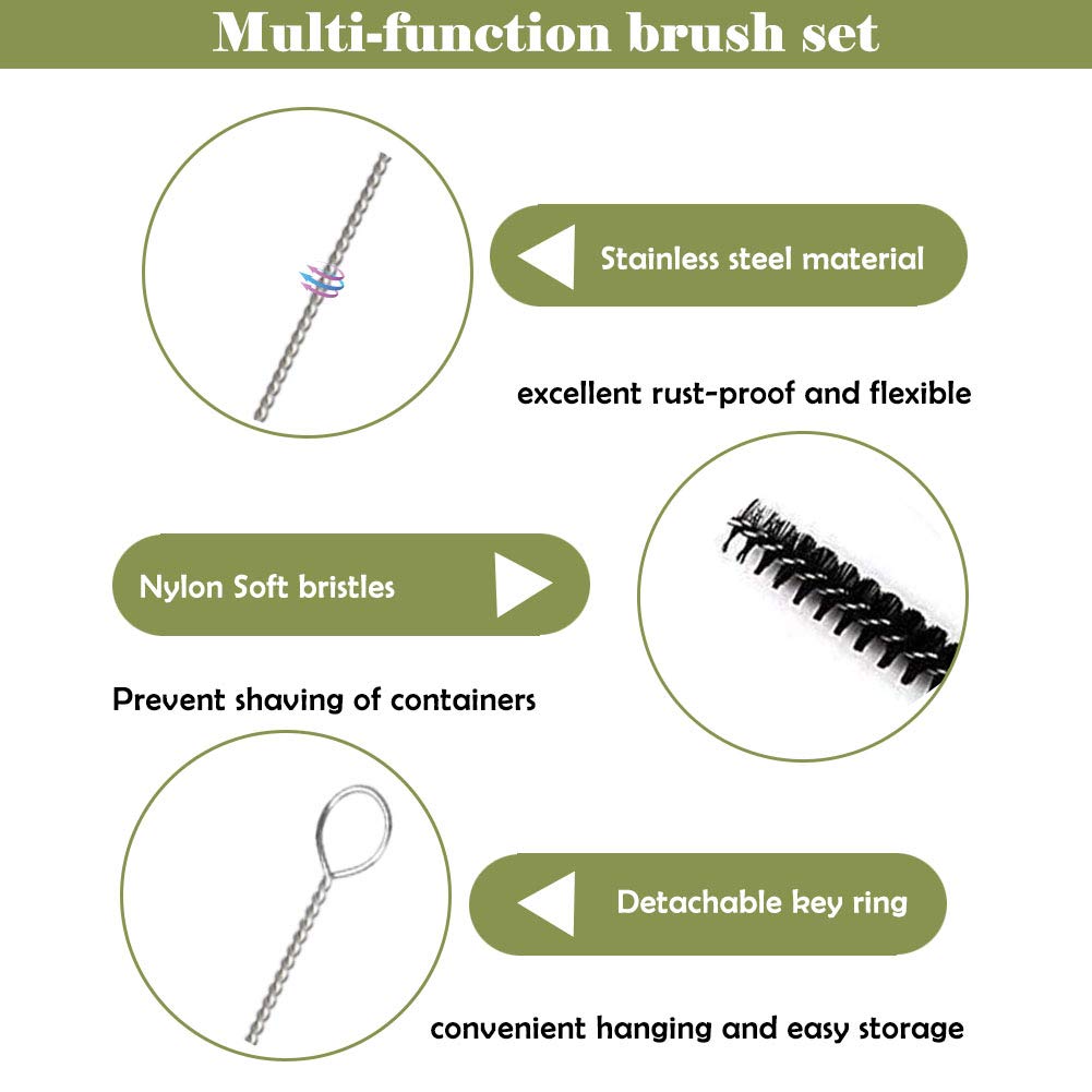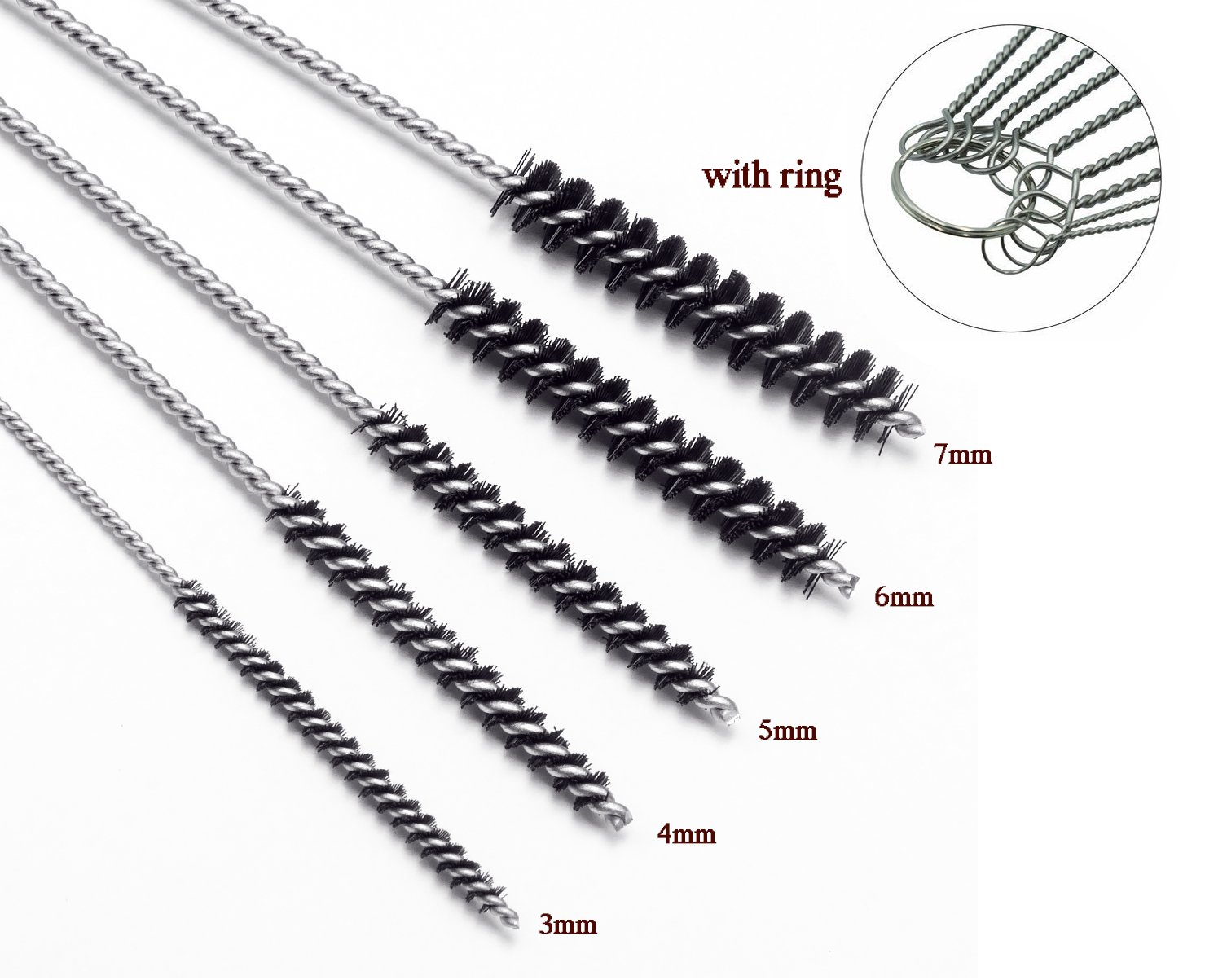 – Diâmetros Variados: Inclui escovas com diâmetros de 3mm, 4mm, 5mm, 6mm e 7mm, permitindo a limpeza de diferentes tamanhos de fendas e recipientes.