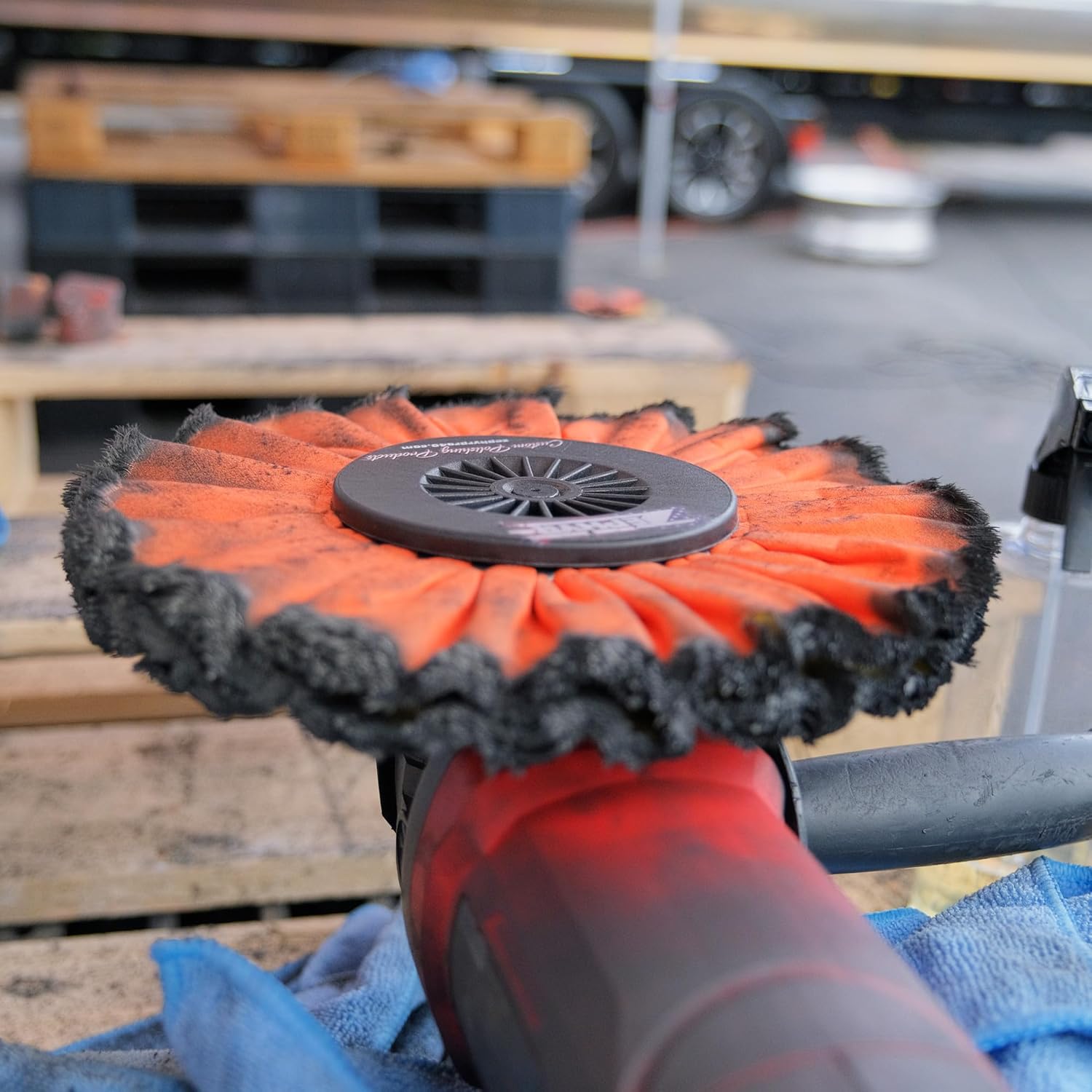 me gusta que su centro es de metal completo no es tan necesario comprar el adaptador que se vende por separado, sacas brillos increíbles, dónde la probe es en aluminio y cromo, solo si necesita una esmiriladora angular potente, hay que debastar el disco antes de usar