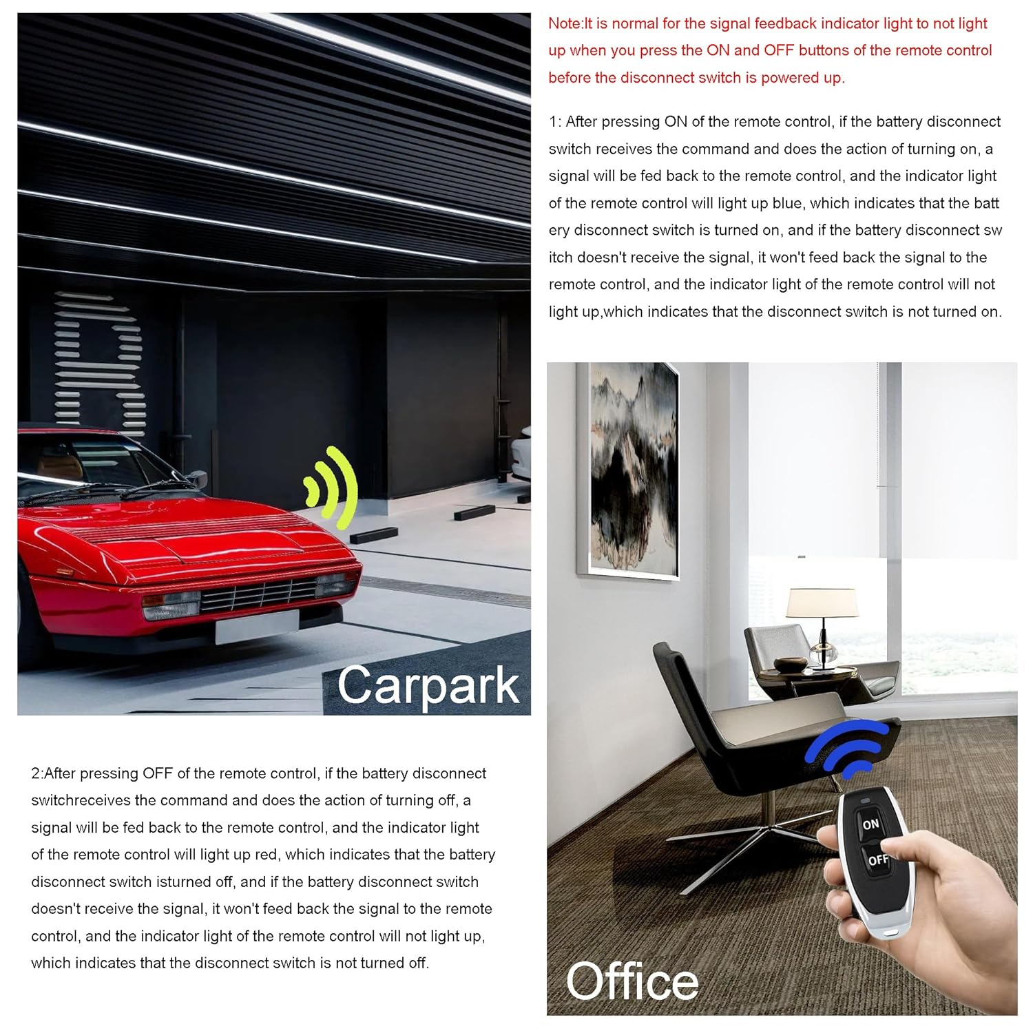 I bought this so I could have a battery disconnect that I can control remotely. I made an emergency water system to provide water to my house in case of power failure(I have a well). I use a 12v RV water pump, a 12v 100ah LipePO4 battery, and a 100 watt solar panel, all mounted in a roll around tool box. In just about 5 minutes I can roll this out to my pump and connect it all into my plumbing system and water storage tank, and have running water. I bought this disconnect so I can separate the battery completely from the system to prevent any parasitic drain on it. The distance from my house to the well is within range of the remote’s operating distance, so I can simply turn it on and off from any room in my house.