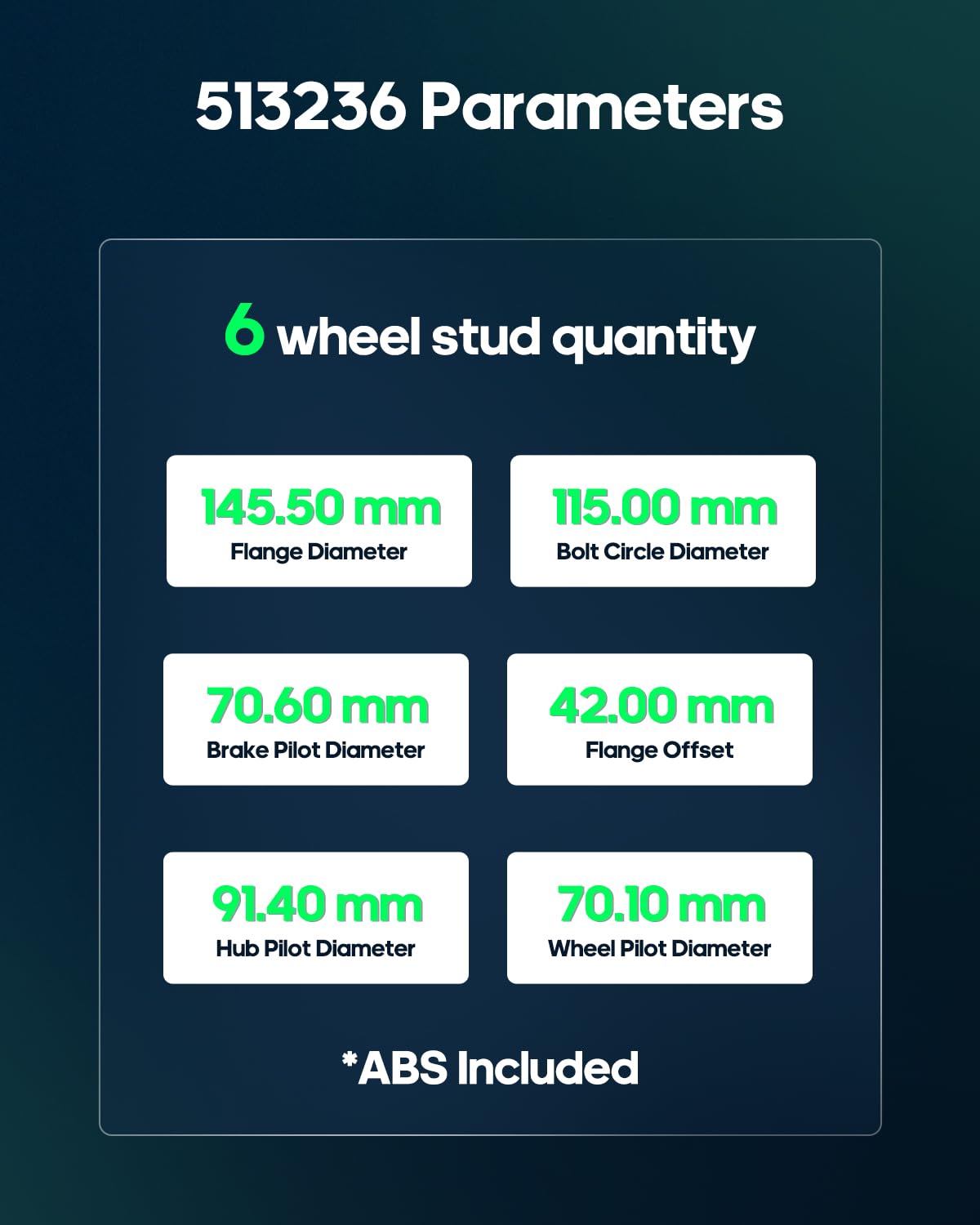 – Conjunto de Rolamento e Hub de Roda, 513236, 29513236, WA513236, WB513236, com ABS, adequado para posições frontais e traseiras.