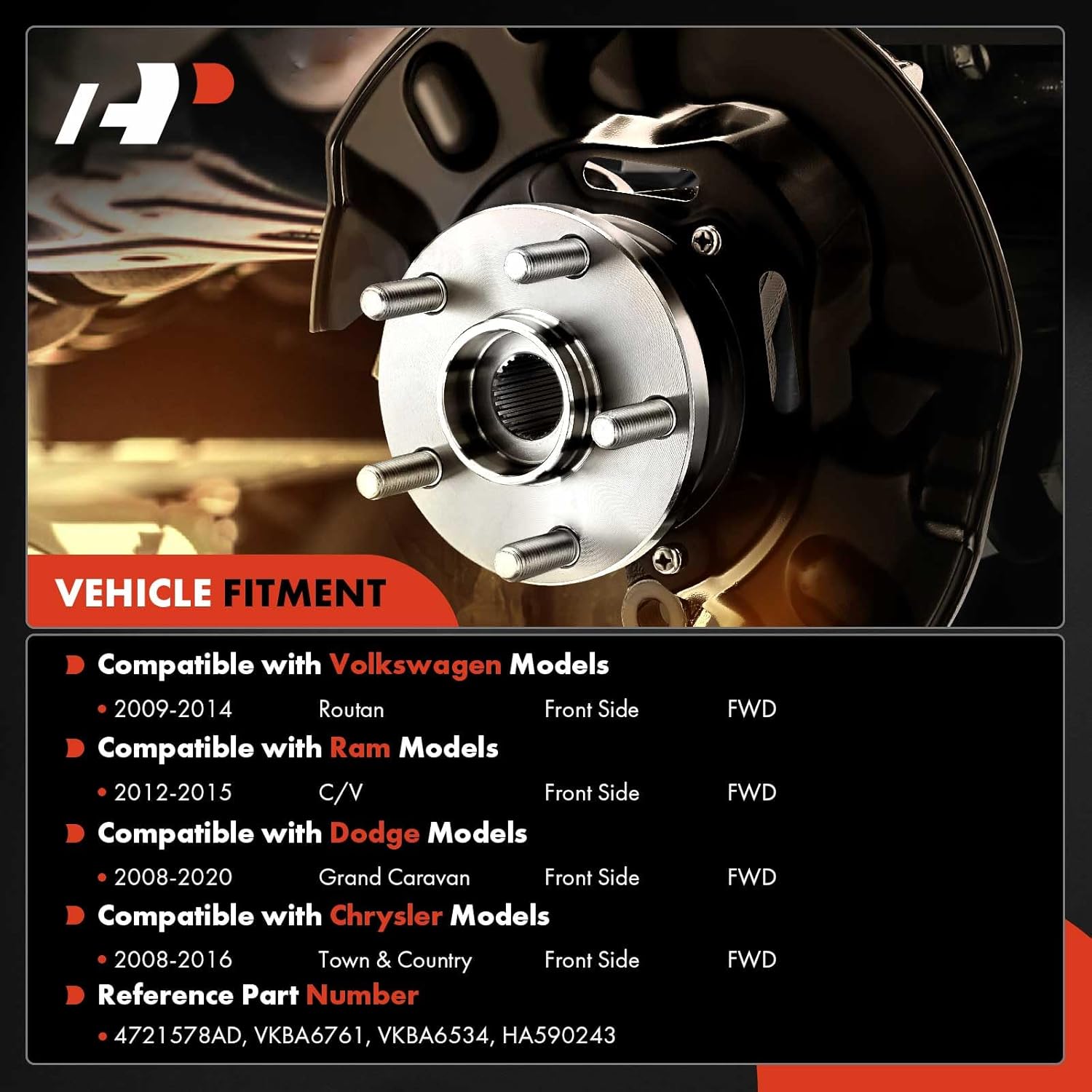 O conjunto de rolamento e cubo de roda dianteiro A-Premium é a solução ideal para quem busca qualidade e durabilidade em peças automotivas. Compatível com uma variedade de veículos, incluindo Chrysler Town & Country (2008-2016), Dodge Grand Caravan (2008-2020), Ram C/V (2012-2015) e Volkswagen Routan (2009-2014), este produto é projetado exclusivamente para veículos com tração dianteira (FWD).