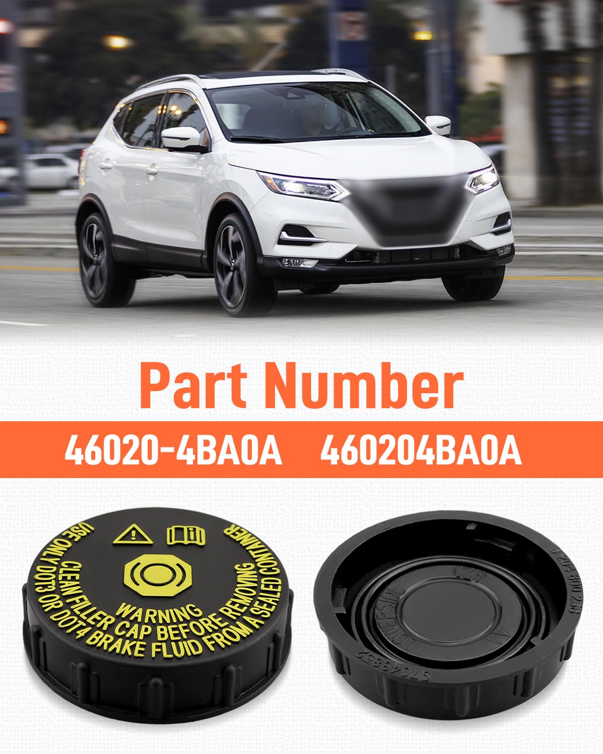- Modelos Compatíveis: A tampa do reservatório de fluido de freio é compatível com Nissan Rogue de 2015 a 2023 e Nissan Rogue Sport de 2017 a 2021.