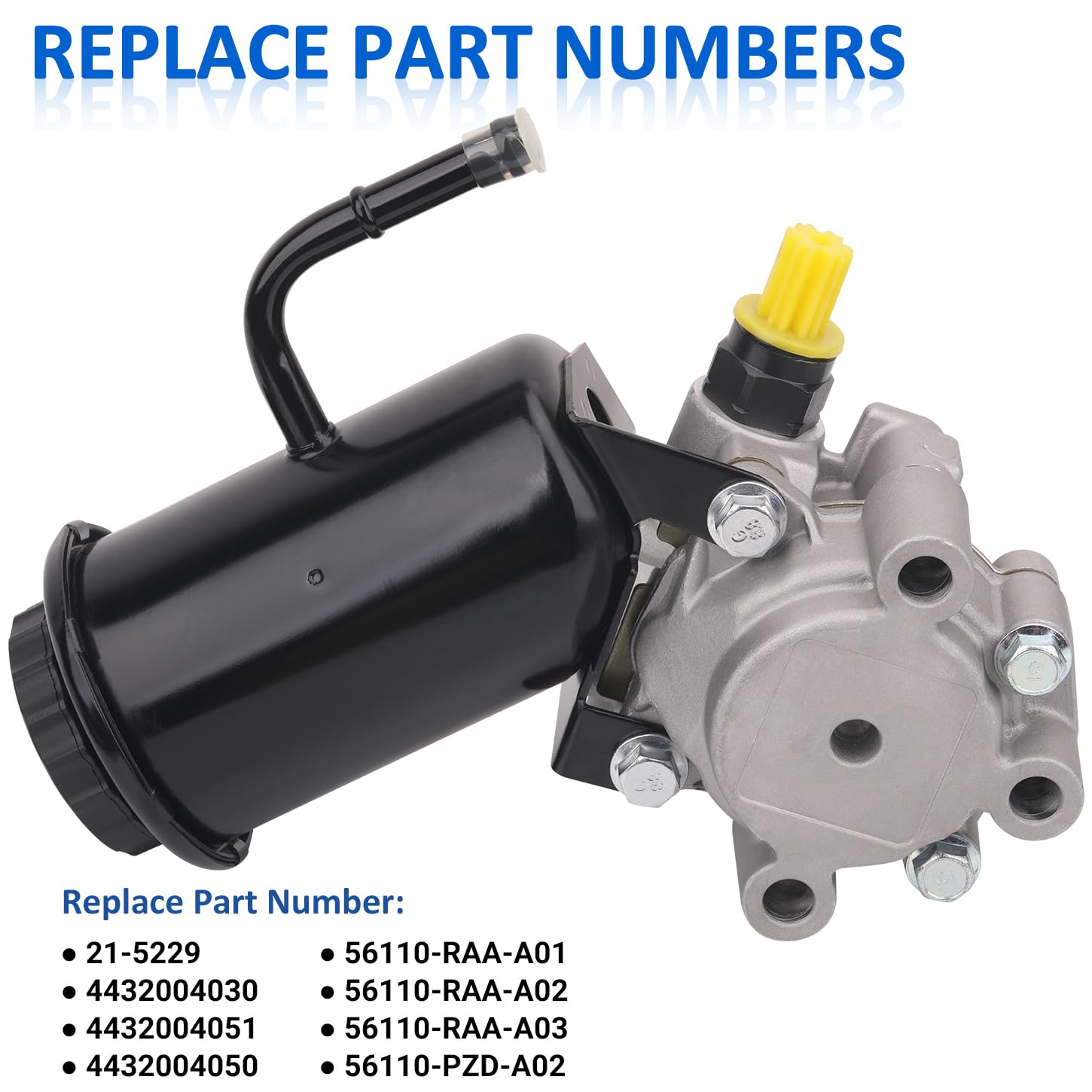 - Substituição de Peça Original: O número da peça 21-5229 substitui as referências OE 4432004030, 4432004052, 4432004051, 4432004050, 56110-RAA-A01, 56110-RAA-A02, 56110-RAA-A03 e 56110-PZD-A02. Esta bomba de direção AiYiGu é fabricada de acordo com os padrões originais de equipamento (OE), garantindo qualidade e desempenho.