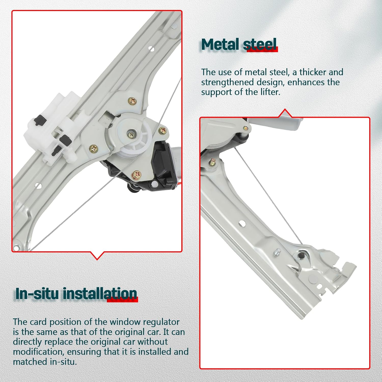 - COMPONENTES REFORÇADOS: O motor da janela frontal direita é feito de fio de aço espesso e placa de aço, proporcionando uma capacidade de carga mais forte, sendo resistente e firme, além de operar suavemente.