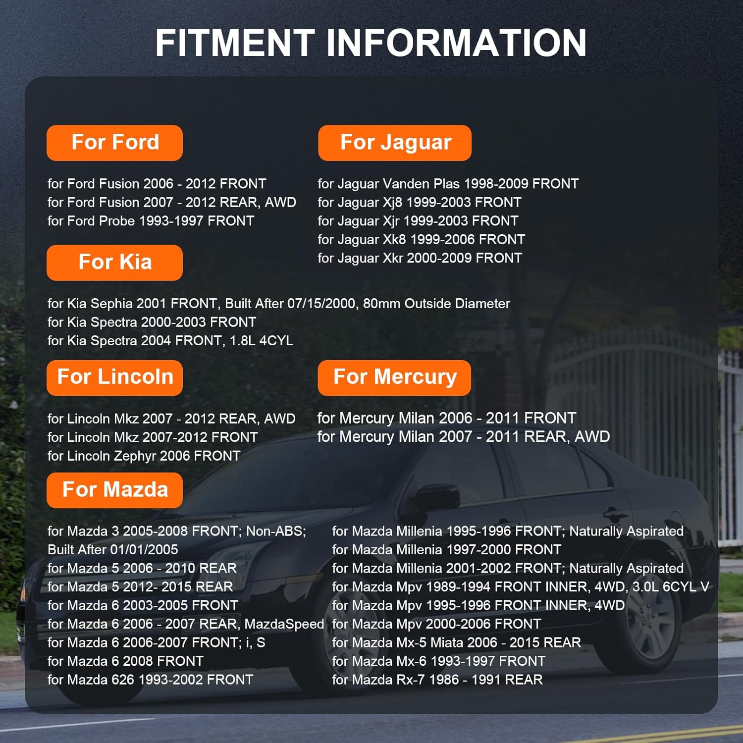 - ADAPTABILIDADE DO CUBO DA RODA: O rolamento do cubo da roda é compatível com modelos específicos, incluindo Ford Fusion (2008-2012), Lincoln MKZ (2007-2012), Mercury Milan (2006-2011), além de outros veículos como Mazda 6 (2005-2008). A compatibilidade é essencial para garantir um encaixe perfeito e desempenho ideal.
